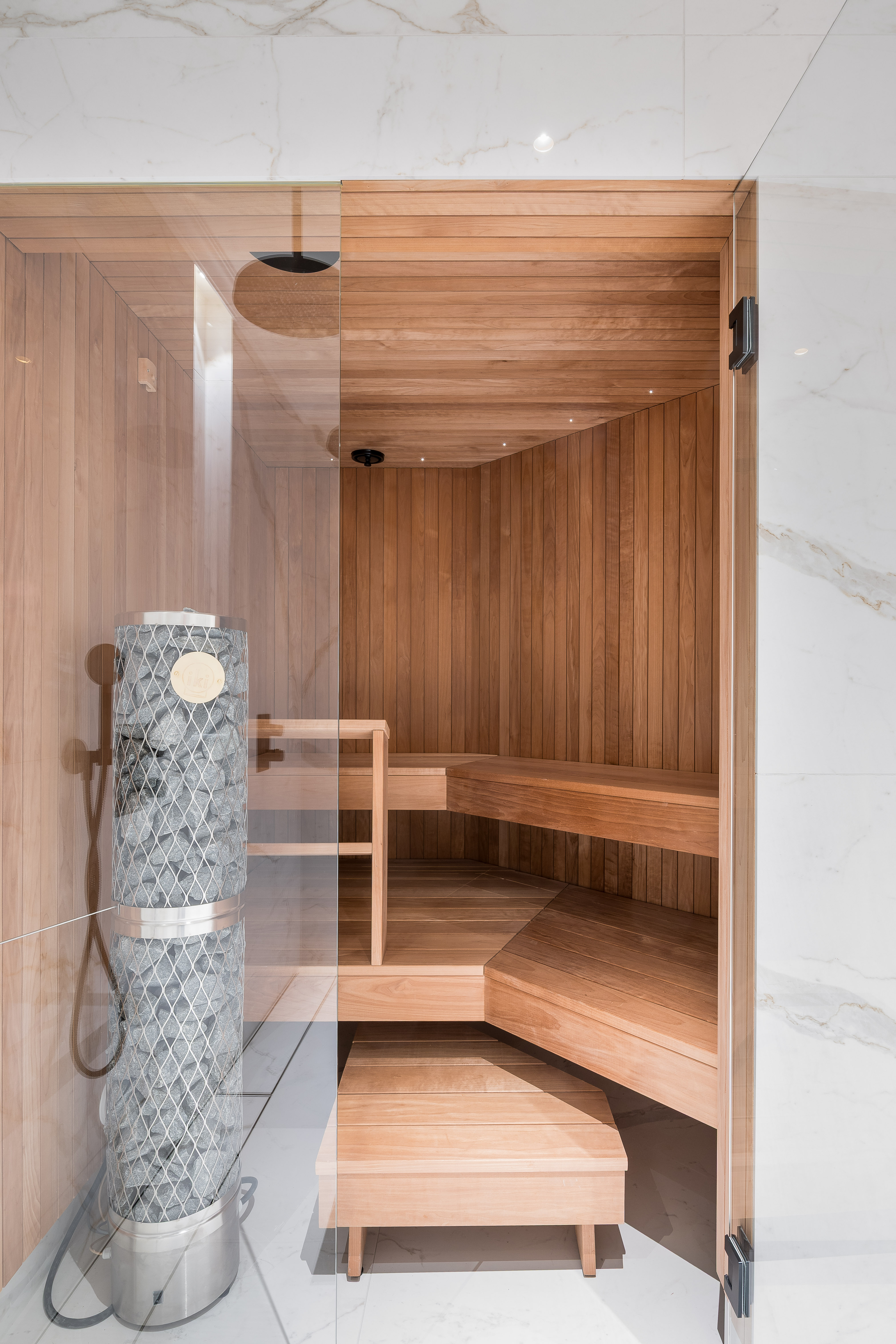 | Saunan kuvaus | Lattiat (laatta), Sähkökiuas, Tulikivi Kuura -kiuas antaa pehmeät ja nautinnolliset löylyt. Saunan pesuhuoneen puoleinen seinä on lasia ja seinän ja katon paneelit lämpökäsiteltyä haapaa. Valaistuksena viihtyisät Cariitti -kuituvalot. |