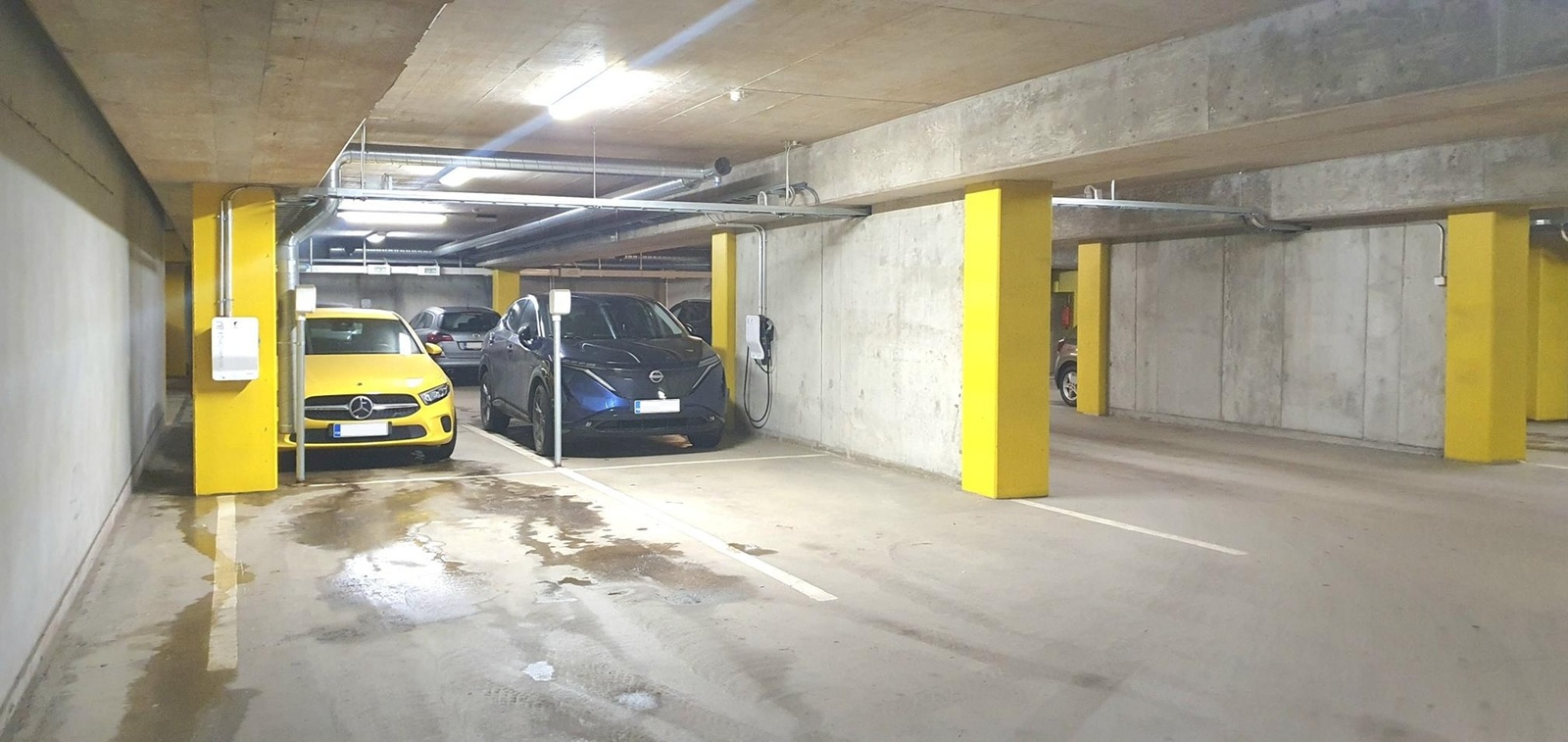 Vapaa autohallipaikka vuonna 2013 valmistuneen talon autohallissa.