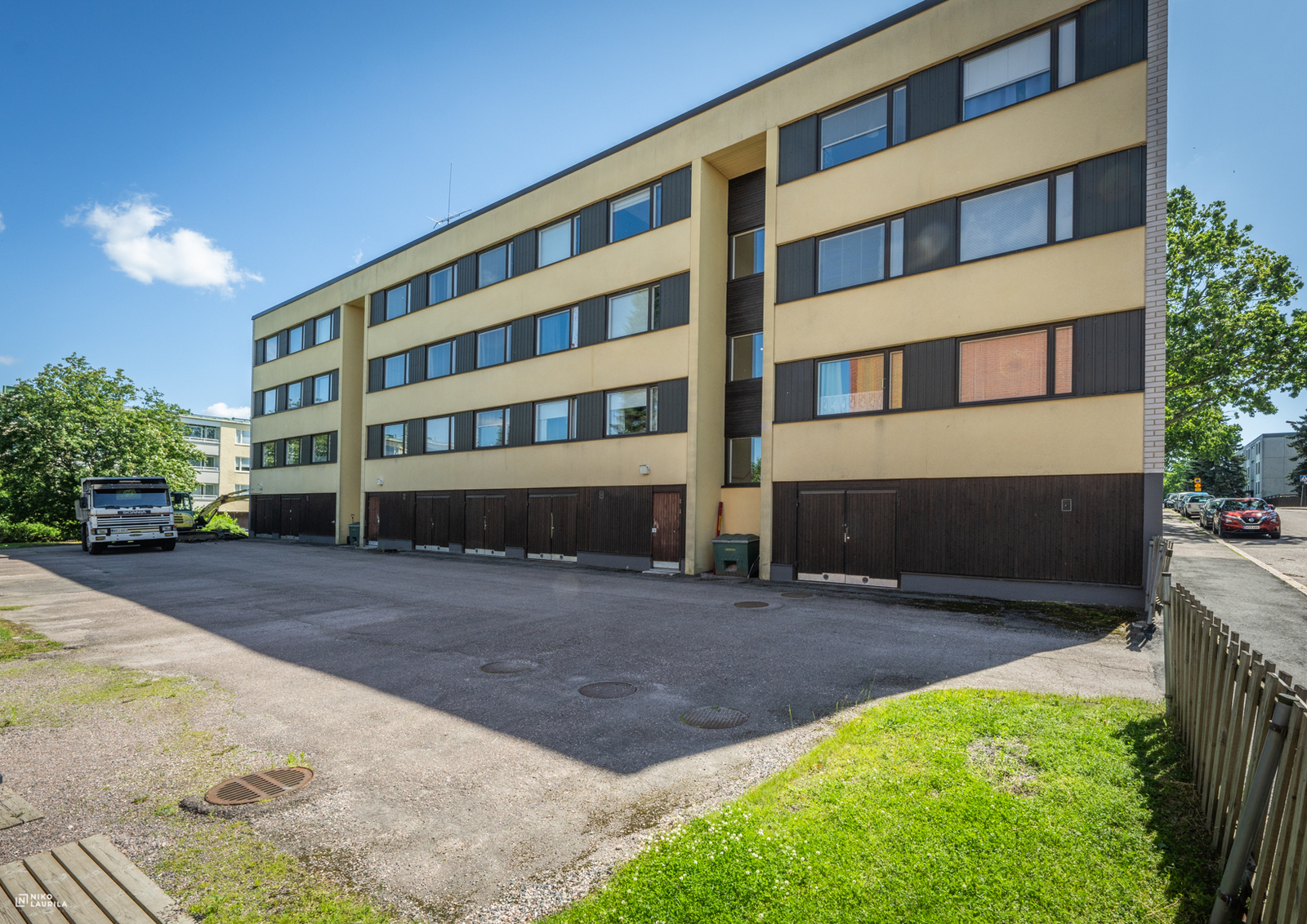 | Tehdyt remontit | Ikkunat ja parvekkeenovet uusittu ja ilmanvaihtoa säädetty 2001, kattopinnoite uusittu 2005, parveke ja osittainen julkisivukorjaus 2008, lukot uudistettu 2009, IV-kanavat puhdistettu ja säädetty 2011, käyttövesiputkiston uusimisen, viemäreiden sukitus/uusimistyön, kylpyhuoneiden korjaustyö, lämmönvaihtimen uusimisen ja patteriverkoston tasapainoitus 2017, ulko-ovet uusittu 2020, autolämmityspistorasioiden korjaus 2021, kellarin tuloilmaventtiilit uusittu lämpötilan mukaan säätyviksi 2021, VSS-tilan kunnostus ja varusteiden lisäys 2022, salaojatutkimus 2023, lämmönsiirrin vaihdettu 2023, salaojaremontti hankesuunnittelu ja kilpailutus 2024, valokuituliittymä 2024-2025, palovaroittimien asennus huoneistoihin 2024. |
