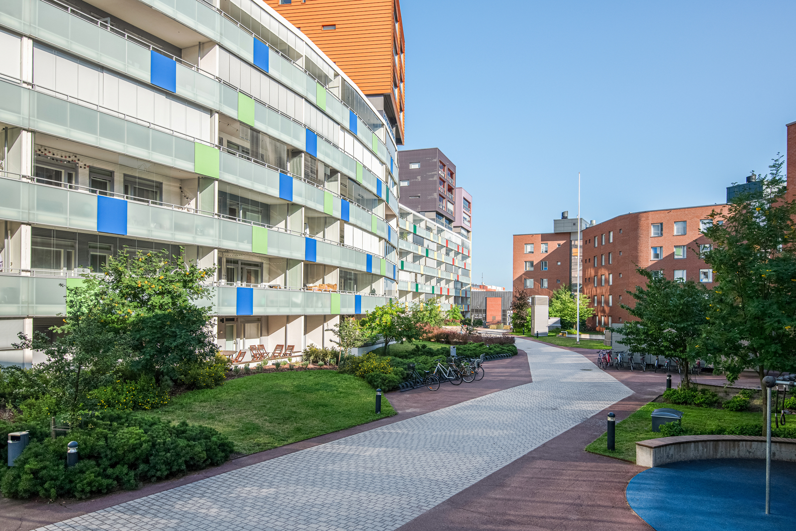 Helppo sijainti lähes oven vieressä ja hissillä pääsy suoraan asuinkerroksiin. Paikalla ei ole sähköauton laturia, mutta valmius löytyy.