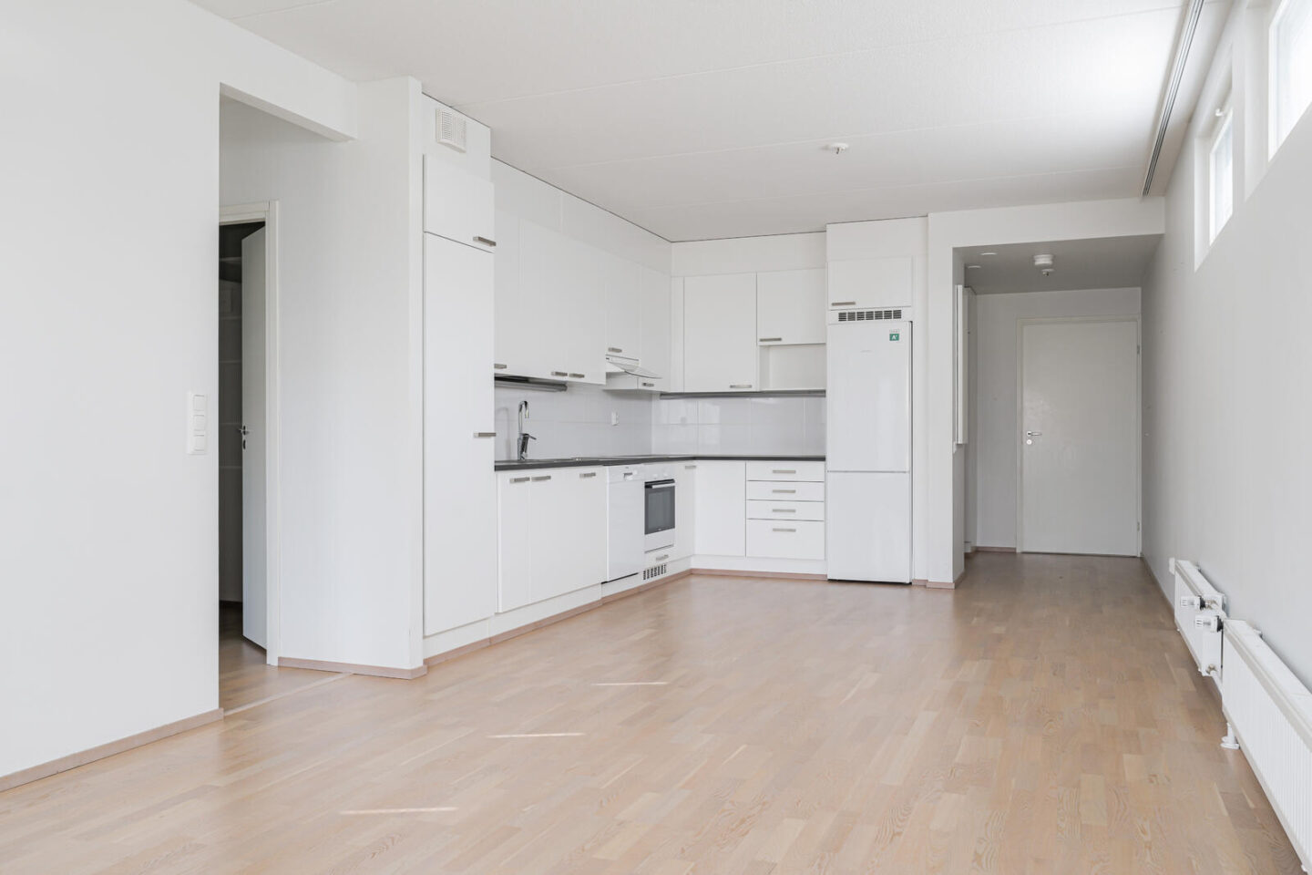 Seinät (maali), lattiat (parketti), käynti lasitetulle parvekkeelle. Parvekkeelta näkymä pohjoiseen, etelään ja länteen. |