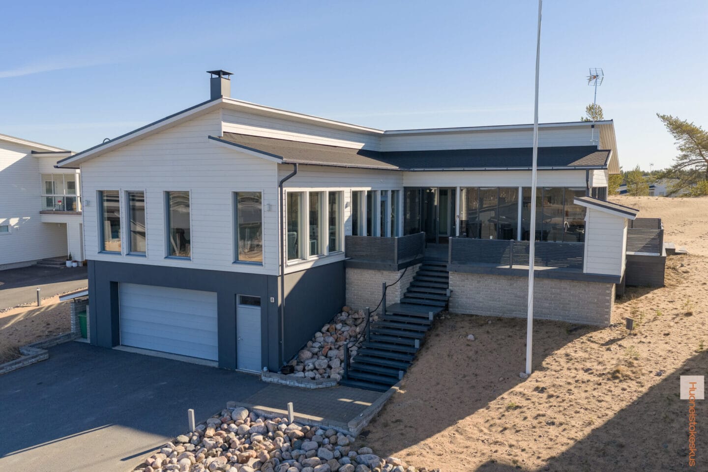 Tämä ainutlaatuinen huvila sijaitsee Kalajoen Hiekkasärkkien upeissa merimaisemissa. Vuonna 2014 loma-asuntomessuille valmistunut kohde tarjoaa tilaa ja mukavuutta perheelle ja sopii loistavasti myös isomman porukan lomailu tai juhlakäyttöön. Täällä voit nauttia rauhallisesta merellisestä ympäristöstä lähellä kaikkia palveluita ja aktiviteettejä, joita suosittu Hiekkasärkkien matkailualue tarjoaa.