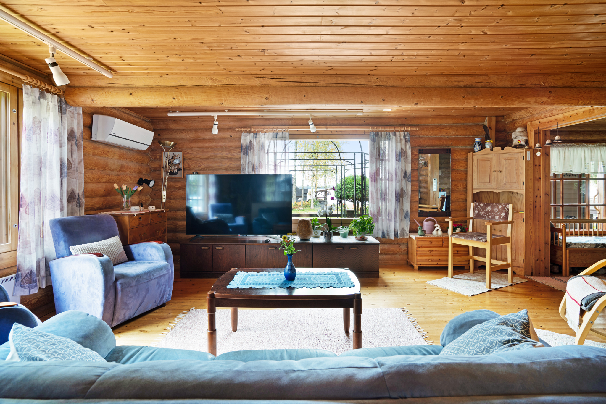 Seinät (paneeli ja hirsi), lattiat (lauta) |