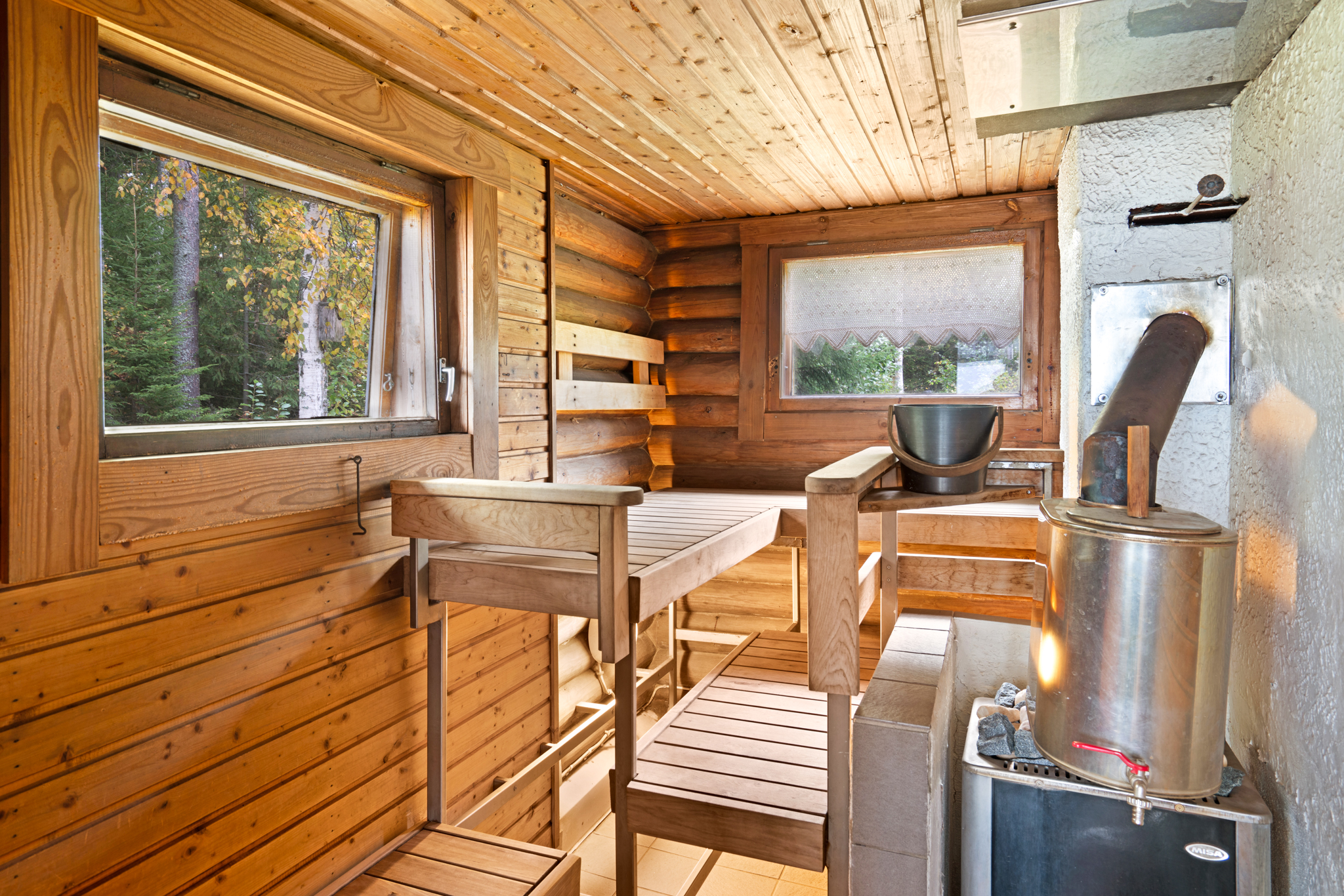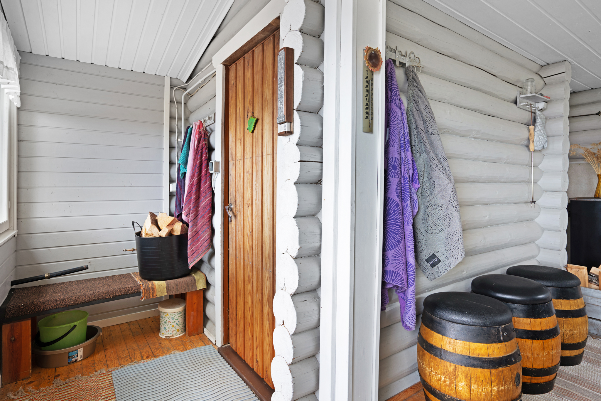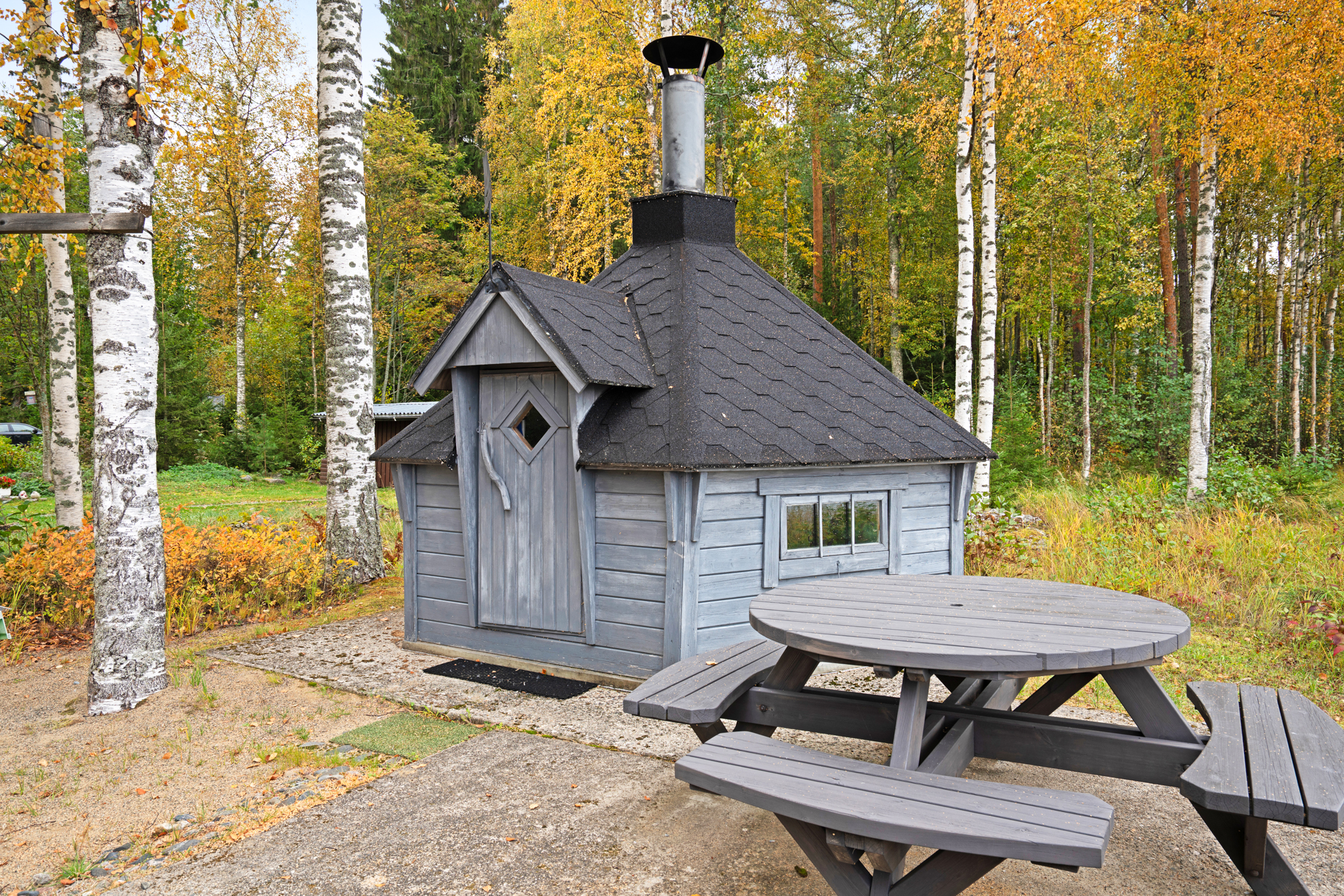 Saunarakennus, puuliiteri, varasto, vaja ja grillikota. |