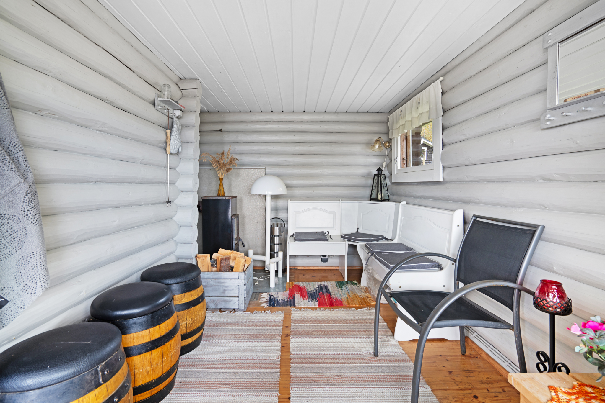 Ympärivuotiseen vapaa-ajan asumiseen soveltuva hirsihuvila, joka on valmistunut 1978 ja laajennettu 1991. Alakerrassa iso olohuone, ruokailutila, keittokomero, makuuhuone ja wc. Yläkerrassa kaksi makuuhuonetta. Lämmitysmuotona, sähkö, ilmalämpöpumppu ja varaava takka. Vesiosuuskunnan vesi. Lisäksi kiinteistöllö sijaitsee rantasauna, varasto, vaja ja grillikota.