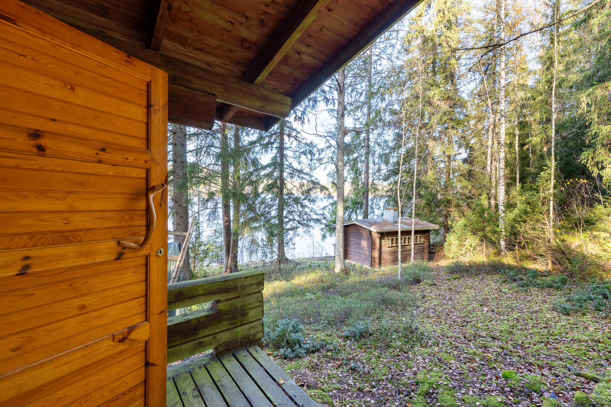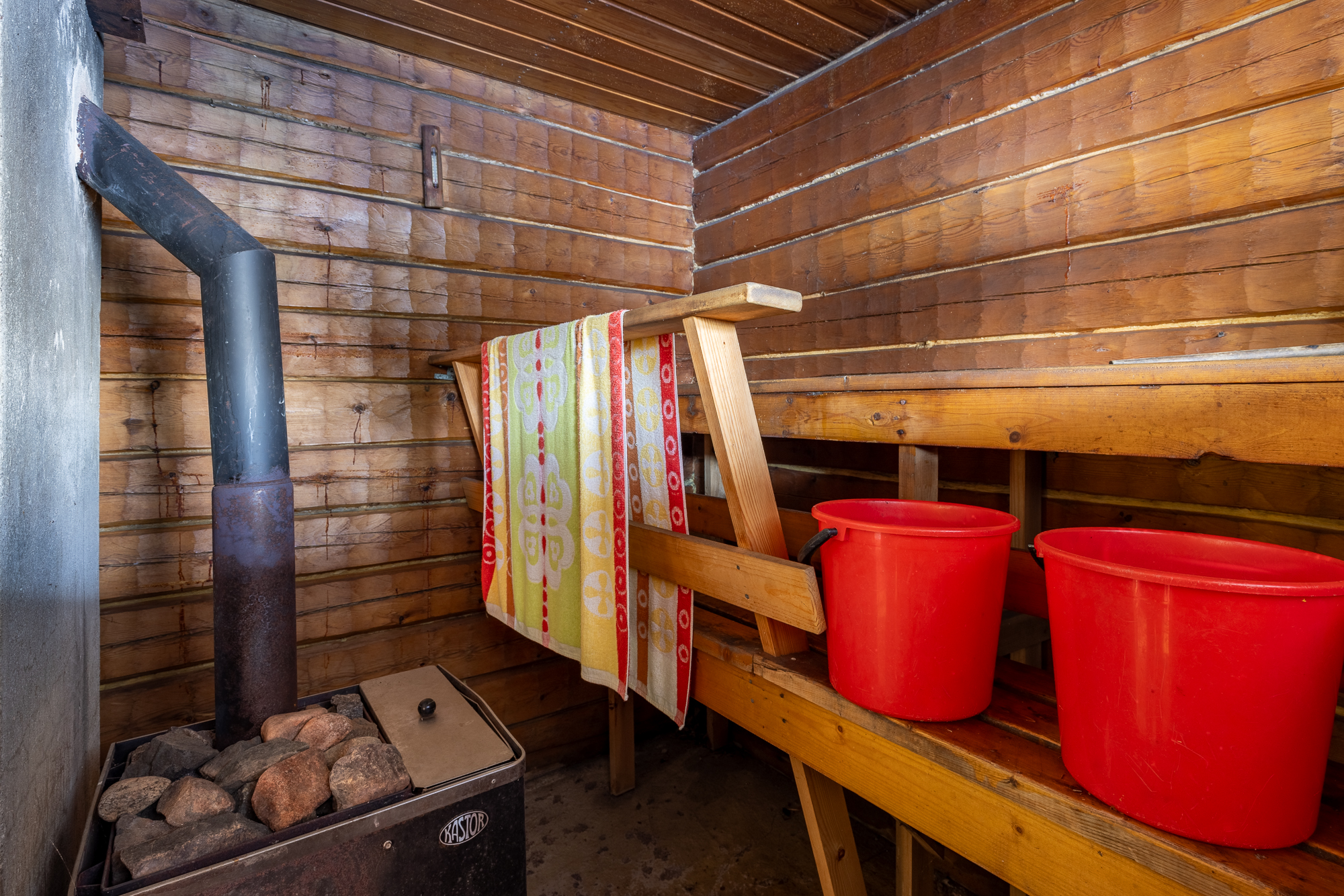 Rantasauna on todellinen helmi, jossa käsin veistetyt hirsiseinät ja puulämmitteinen kiuas tarjoavat ainutlaatuisen saunakokemuksen. Saunan yhteydessä on myös katettu terassi, jossa voi vilvoitella saunan jälkeen.