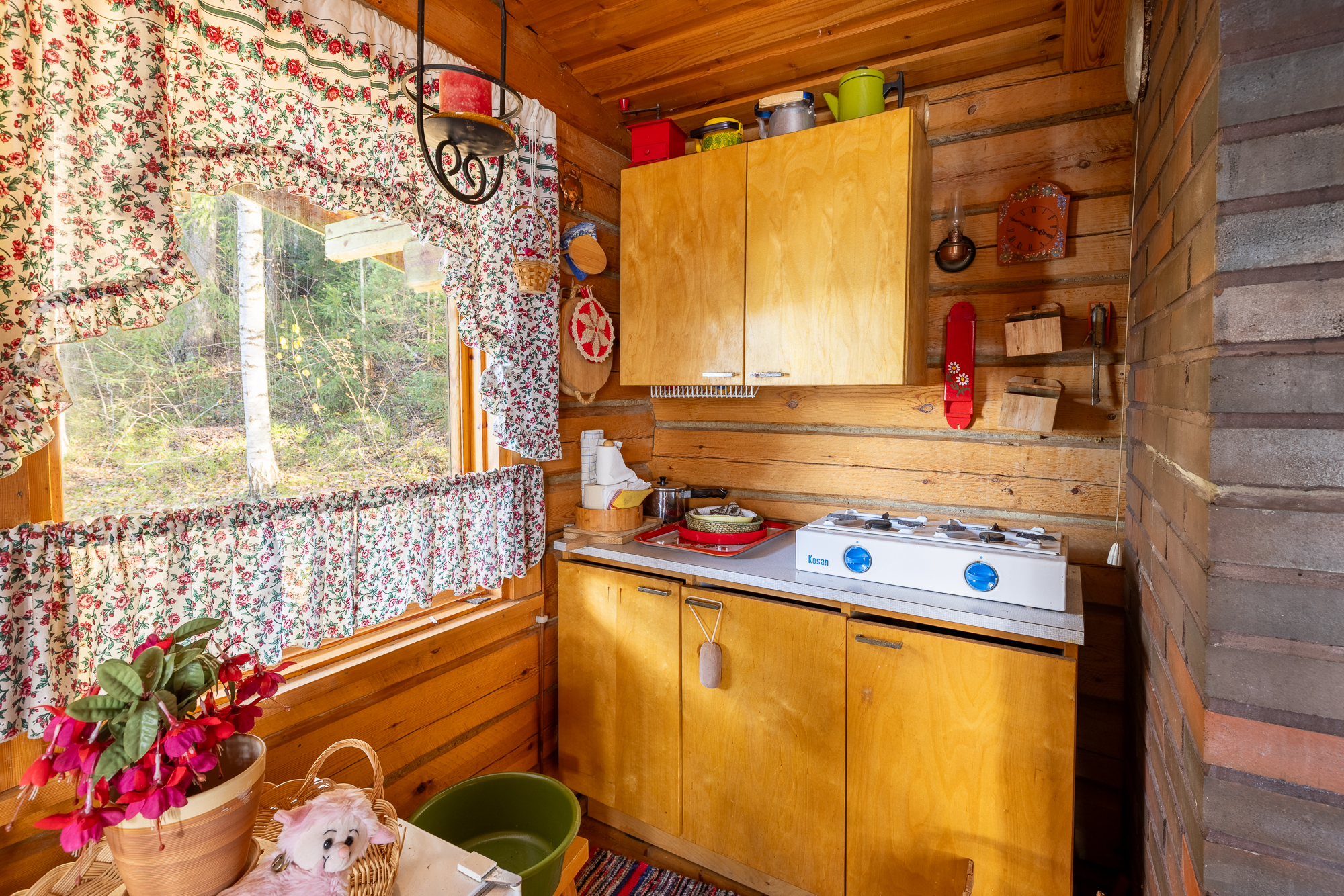 Mökki on rakennettu vuonna 1967 ja säilyttänyt alkuperäisen viehätyksensä. Sisätiloissa on avotakka, joka luo lämpöä ja tunnelmaa viileinä iltoina. Keittonurkkauksessa on kaikki tarpeellinen ruoanlaittoon, ja mökki on valmiiksi kalustettu, joten voit aloittaa lomasi heti.