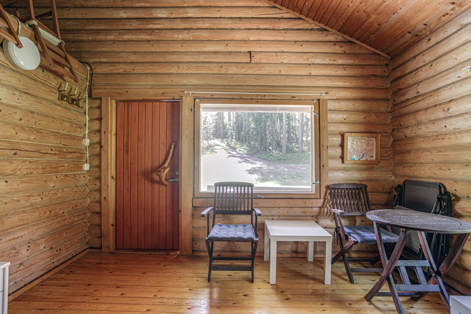 Mökki sijaitsee päättyvän tien päässä. Mökissä on tupa, makuuhuone, parvitilaa, keittiö, pukuhuone ja sauna. Ja tietenkin katteellinen puuterassi, jossa on kiva istuskella ja kahvitella.