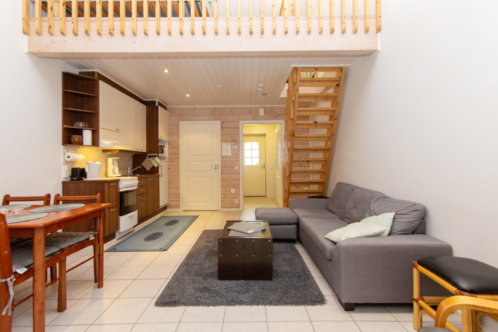 Todella näppärän kokoinen lomahuoneisto Tahkon keskustan alueella. Tilat kahdessa tasossa, alakerrassa tupakeittiö ja kylpyhuone ja parvella vuoteet neljälle. Valokatteella varustettu terassi avautuu länteen. Myydään kalustettuna. Autolle löytyy pistokepaikka ja harrastevälineille varasto.