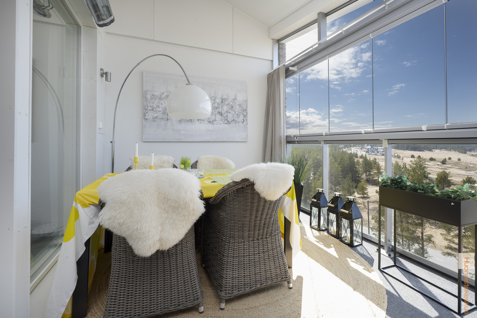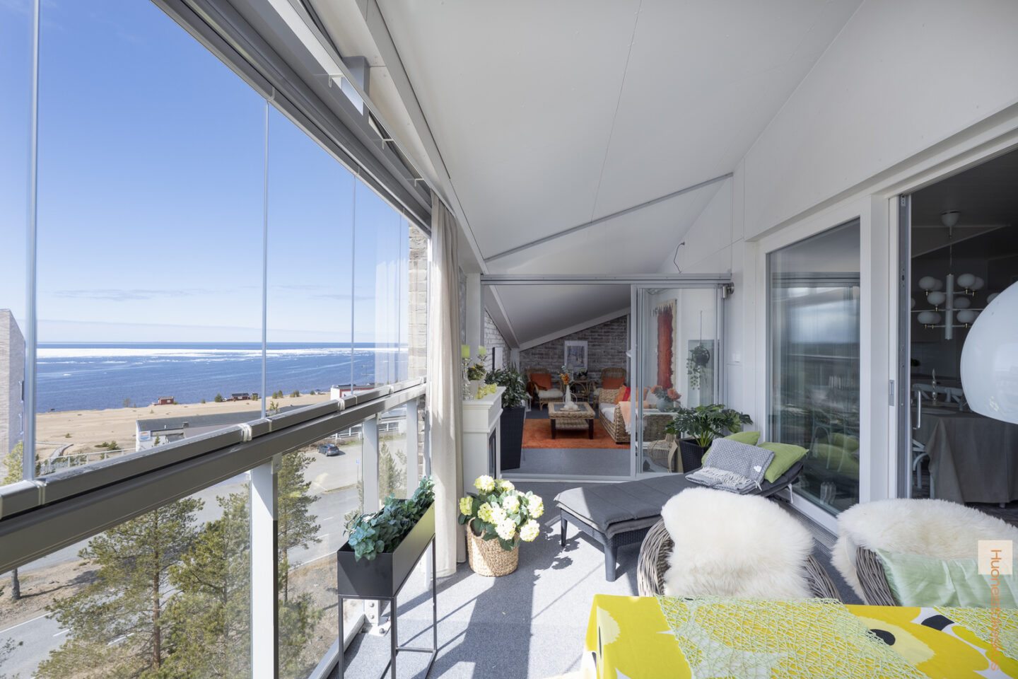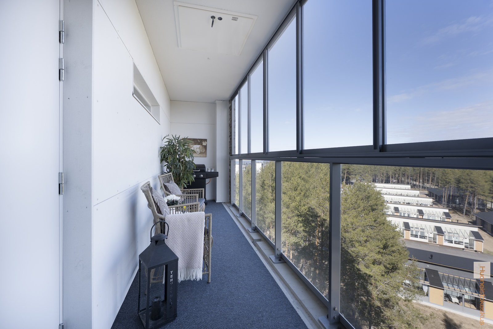 Laadukas kolmen makuuhuoneen asunto, josta aukeaa mahtavat merinäkymät etelän suuntaan. Keittiö-olohuone on avaraa yhtenäistä tilaa josta löytyy myös tunnelmallinen Conturan takka. Oleskelutilojen jatkeena tilava lasitettu parveke meren suuntaan. Huoneiston edustalla olevalle luhtikäytävälle jää tilaa pienelle kahvittelupöydälle aamuauringon suuntaan. Täältä avautuu hienot näkymät kauas mäntymetsikön ylitse.
