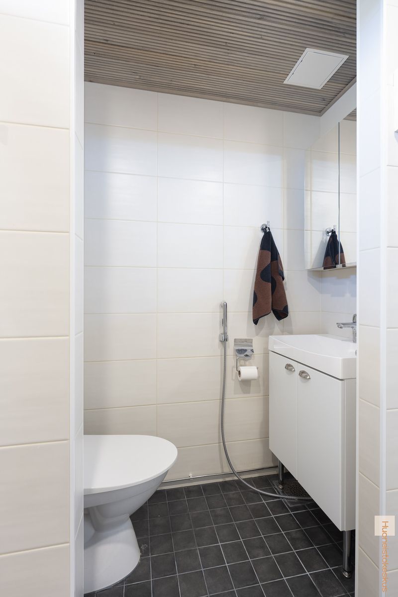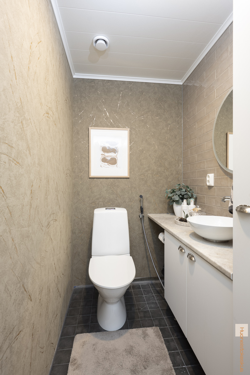 | WC-tilojen kuvaus | Lukumäärä: 1, Bidee-suihku ja lattialämmitys, seinät (Maali), lattiat (Laatta) |