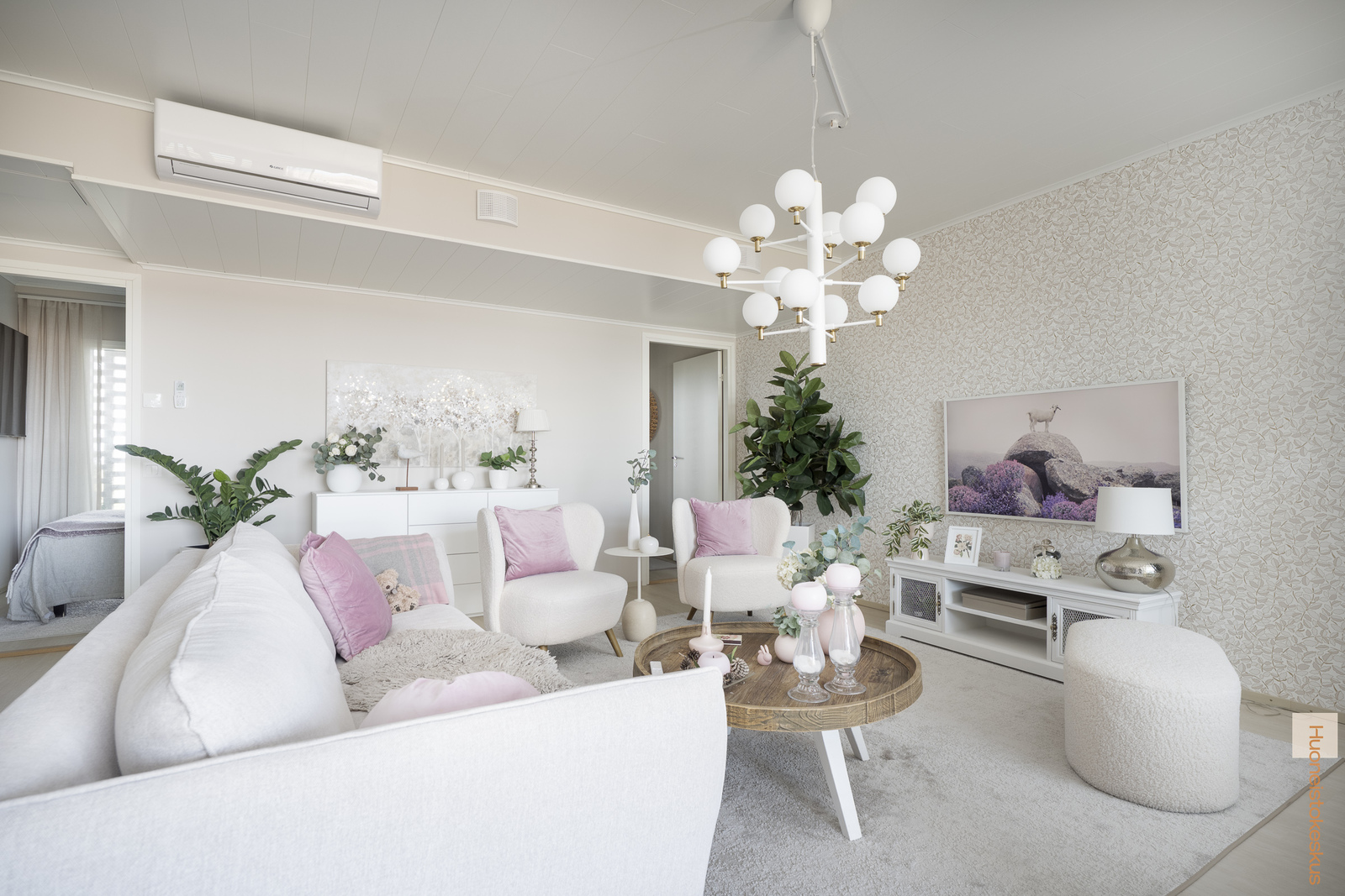 | Olohuoneen kuvaus | Seinät (tapetti ja maali), lattiat (vinyyli) |