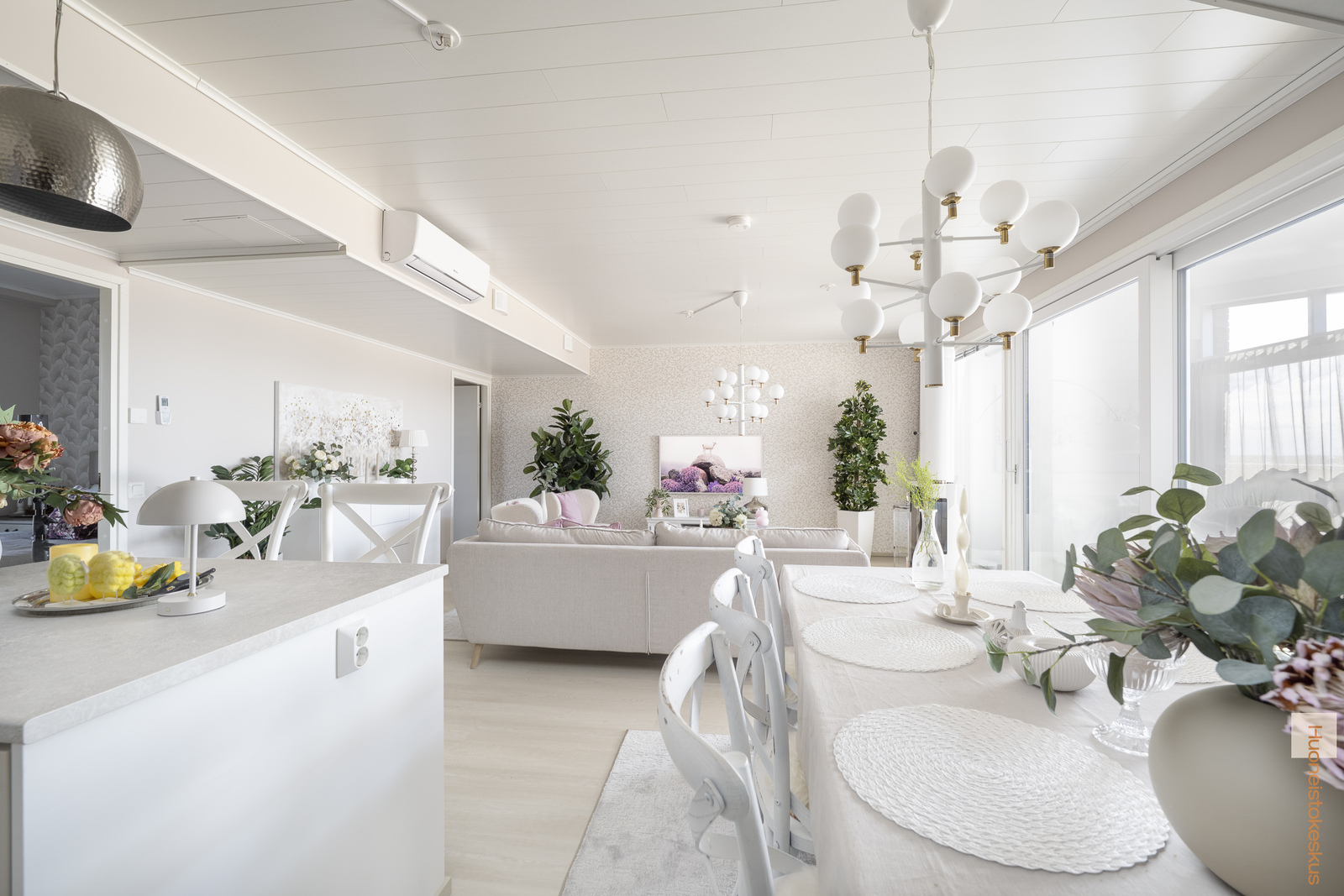 | Muuta kauppaan kuuluvaa | Lisätietoja sisältyvistä varusteista: huoneistokohtainen ilmanvaihtokone, huoneistokohtainen jäähdytyskone, kiinteät valaisimet, sälekaihtimet/rullaverhot |