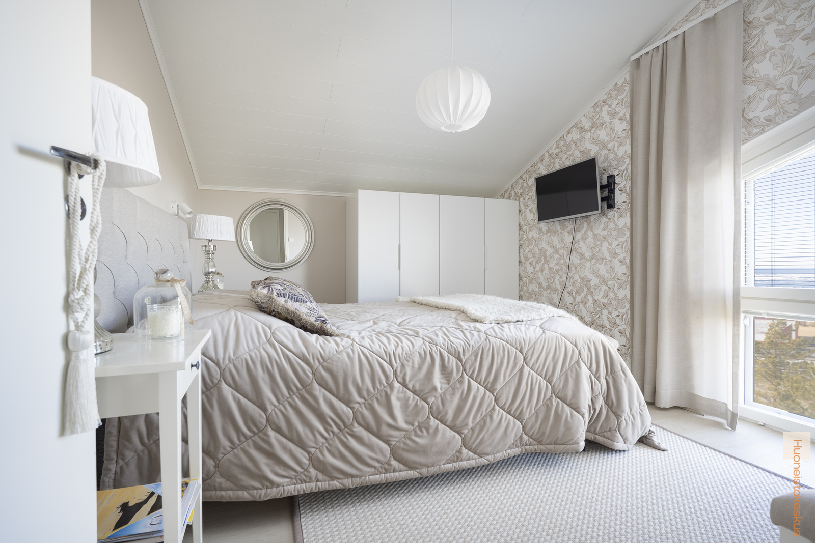 | Makuuhuoneen kuvaus | Lukumäärä: 3, seinät (tapetti ja maali), lattiat (vinyyli) |