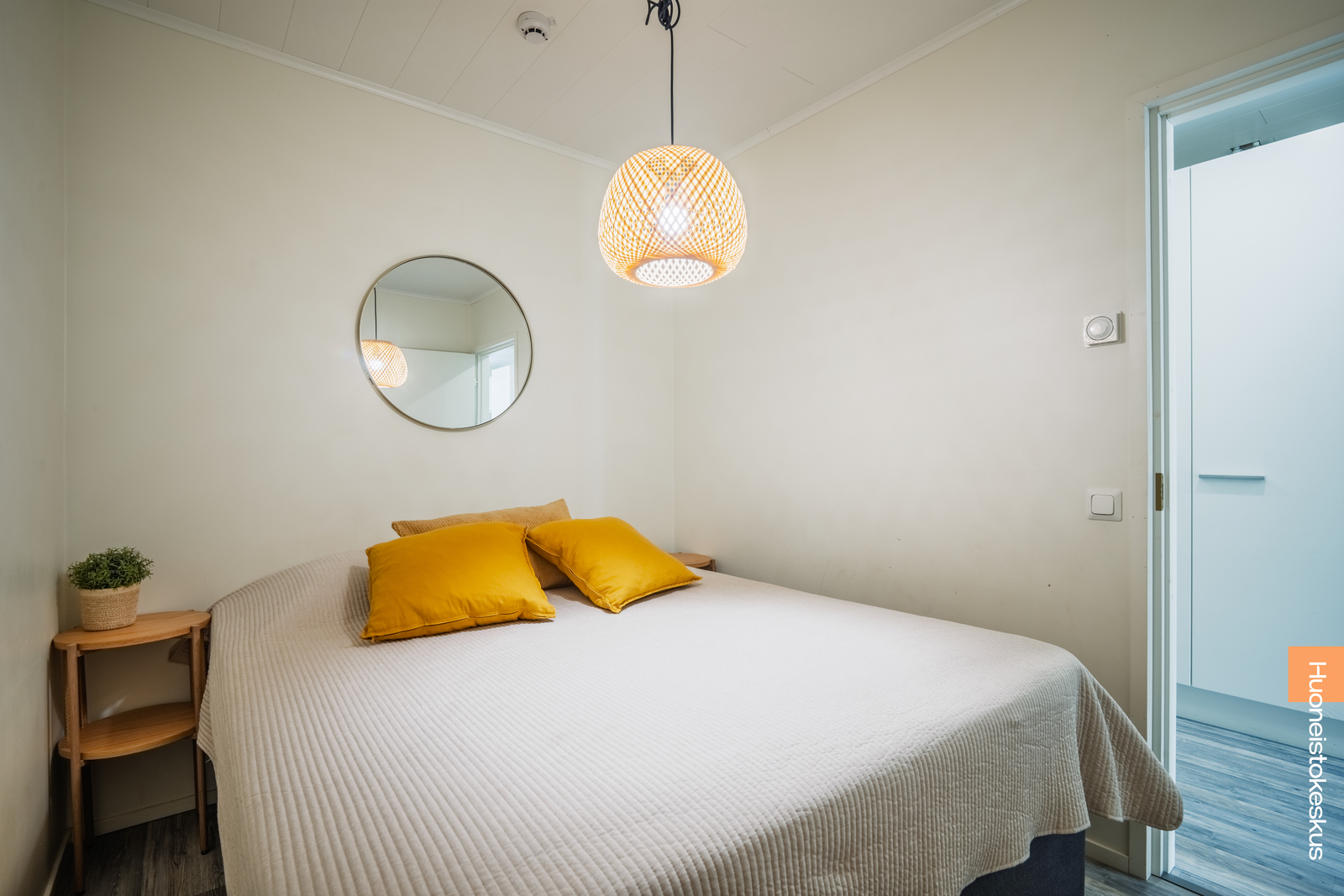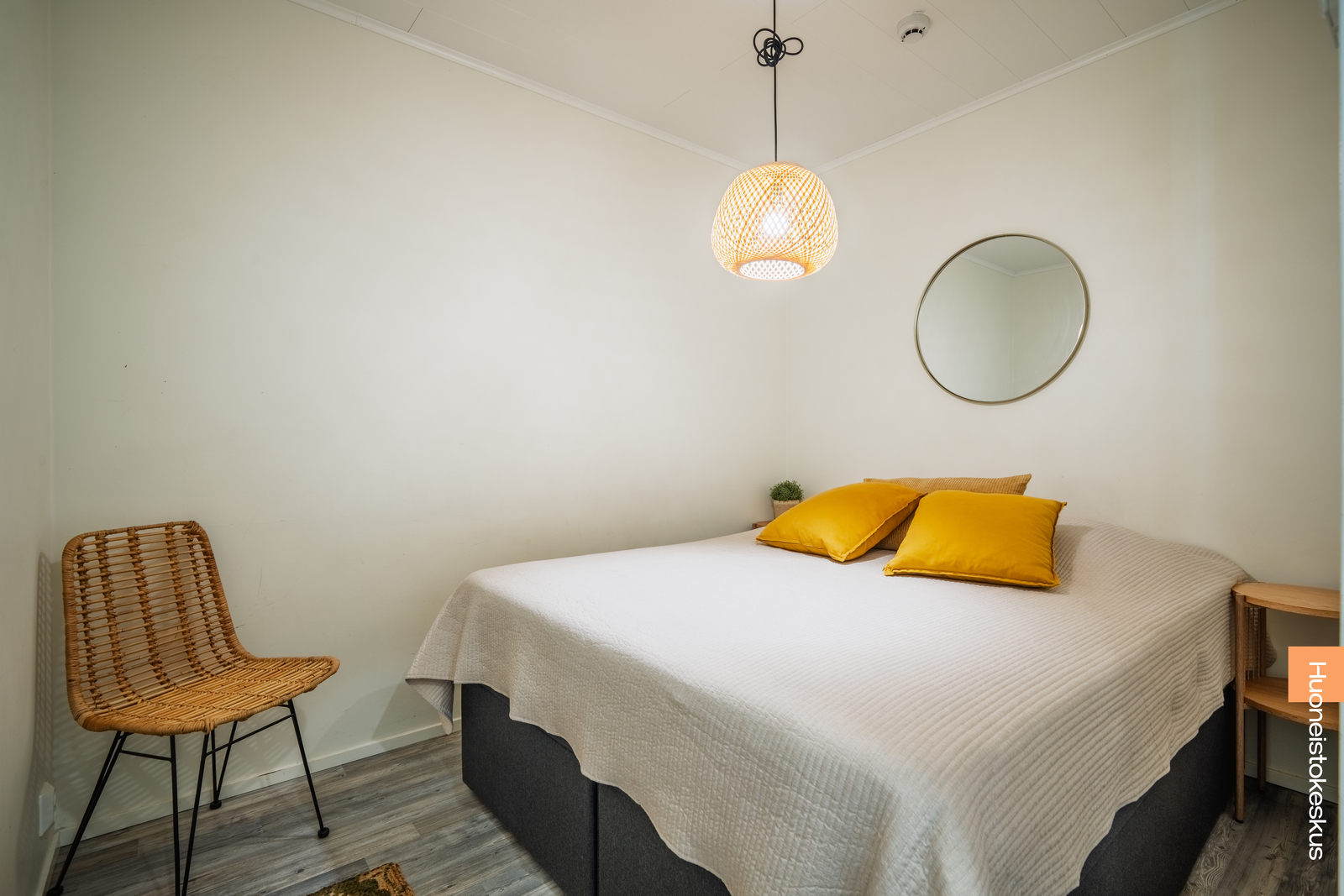 | Makuuhuoneen kuvaus | Lukumäärä: 1, seinät (maali), lattiat (laminaatti) |