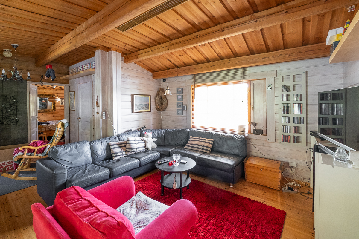 | Olohuoneen kuvaus | Seinät (puu), lattiat (lauta) |