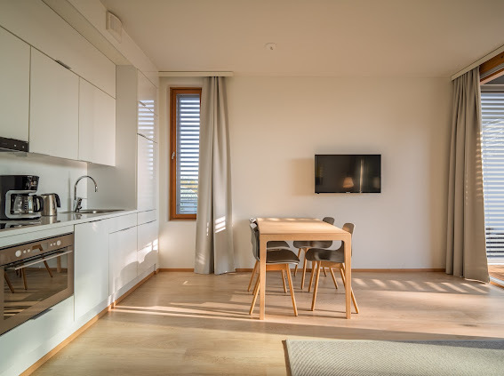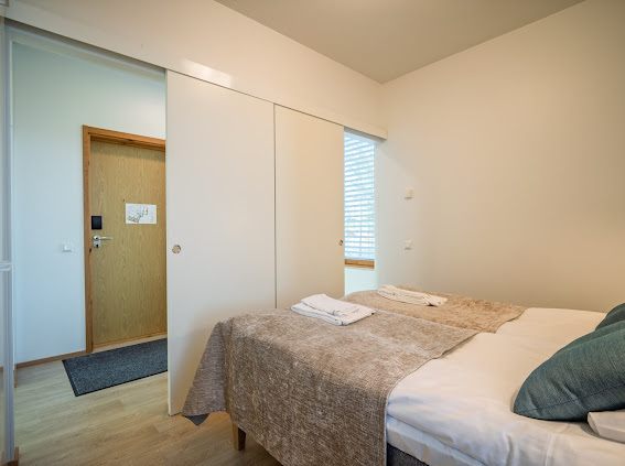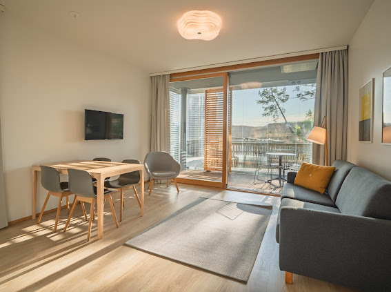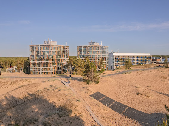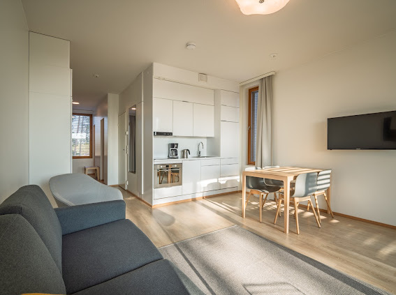 Taloyhtiöstä kulku käytävää pitkin kylpylään ja hotelliin. Asunto on vuorattavana Kylpylähotelli Sanin kautta. Huoneisto myydään kalusteineen ja varusteineen, joten kohde on heti valmis lomailuun tai sijoituskäyttöön.