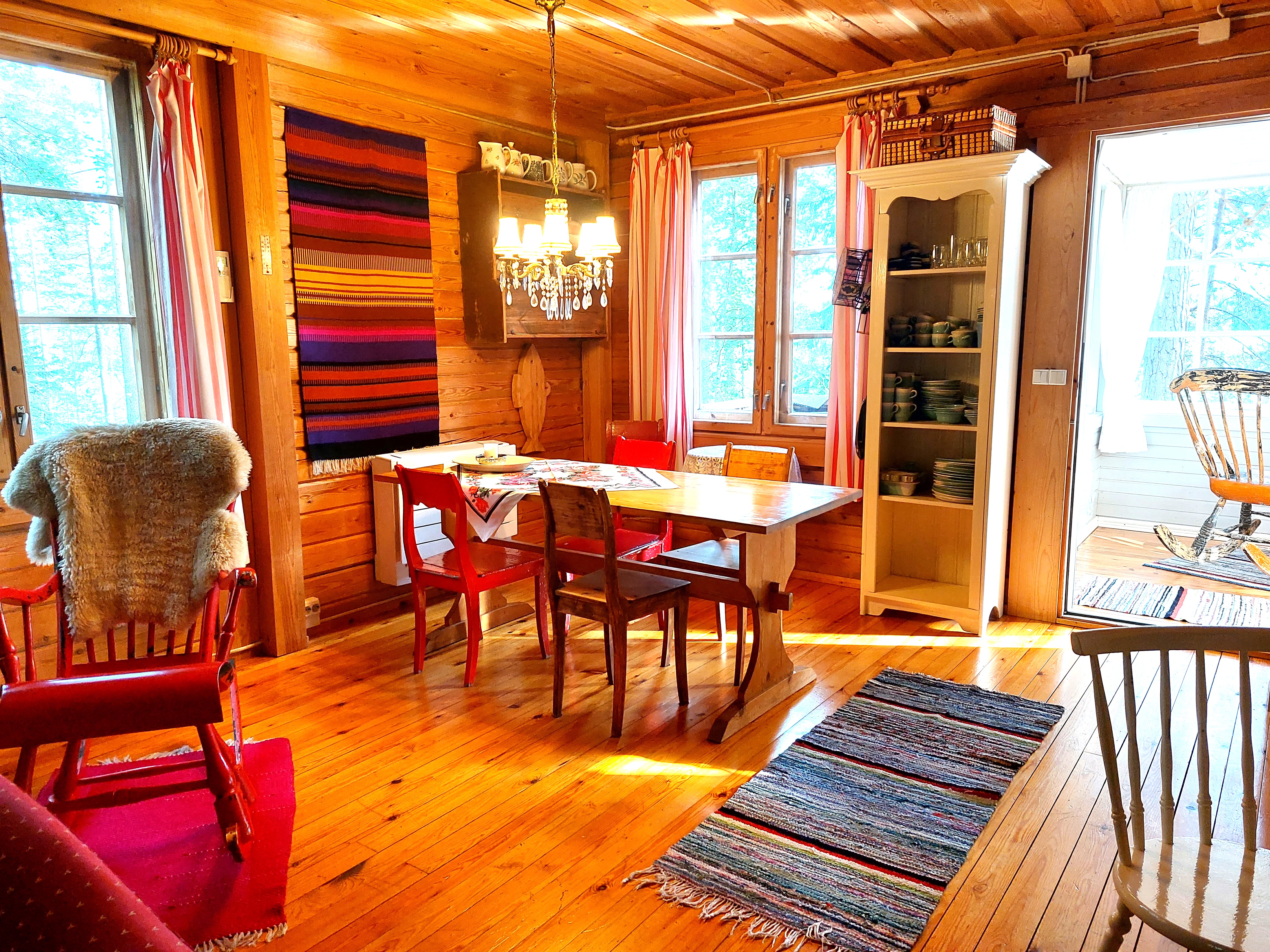 Olohuoneen kuvaus Seinät (hirsi), lattiat (lauta)