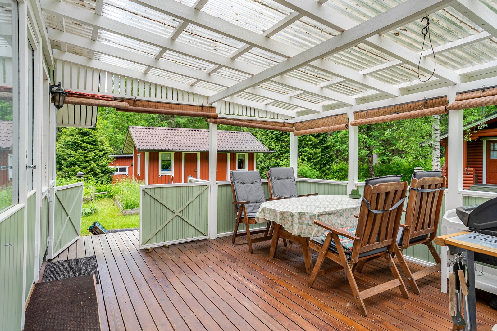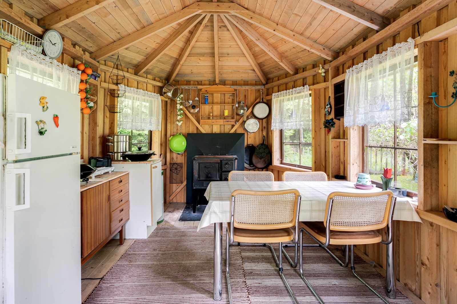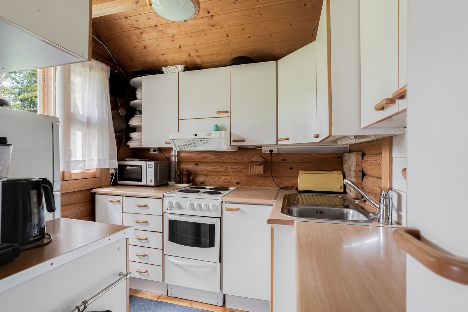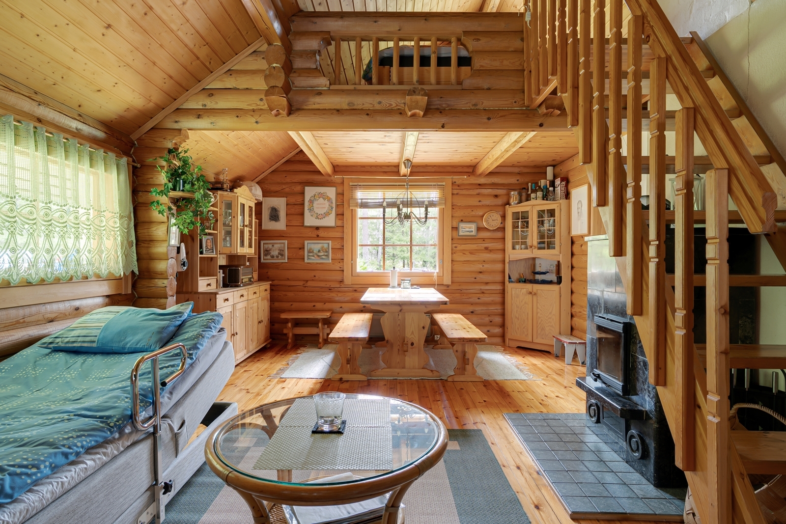 Perinteinen hirsirakenteinen mökki huokuu lämpöä ja kodikkuutta. Pihapiiristä löytyy useita rakennuksia, kuten sauna ja grillikeittiö – täydellinen paikka rentoutumiseen, luonnosta nauttimiseen ja kiireettömiin hetkiin.