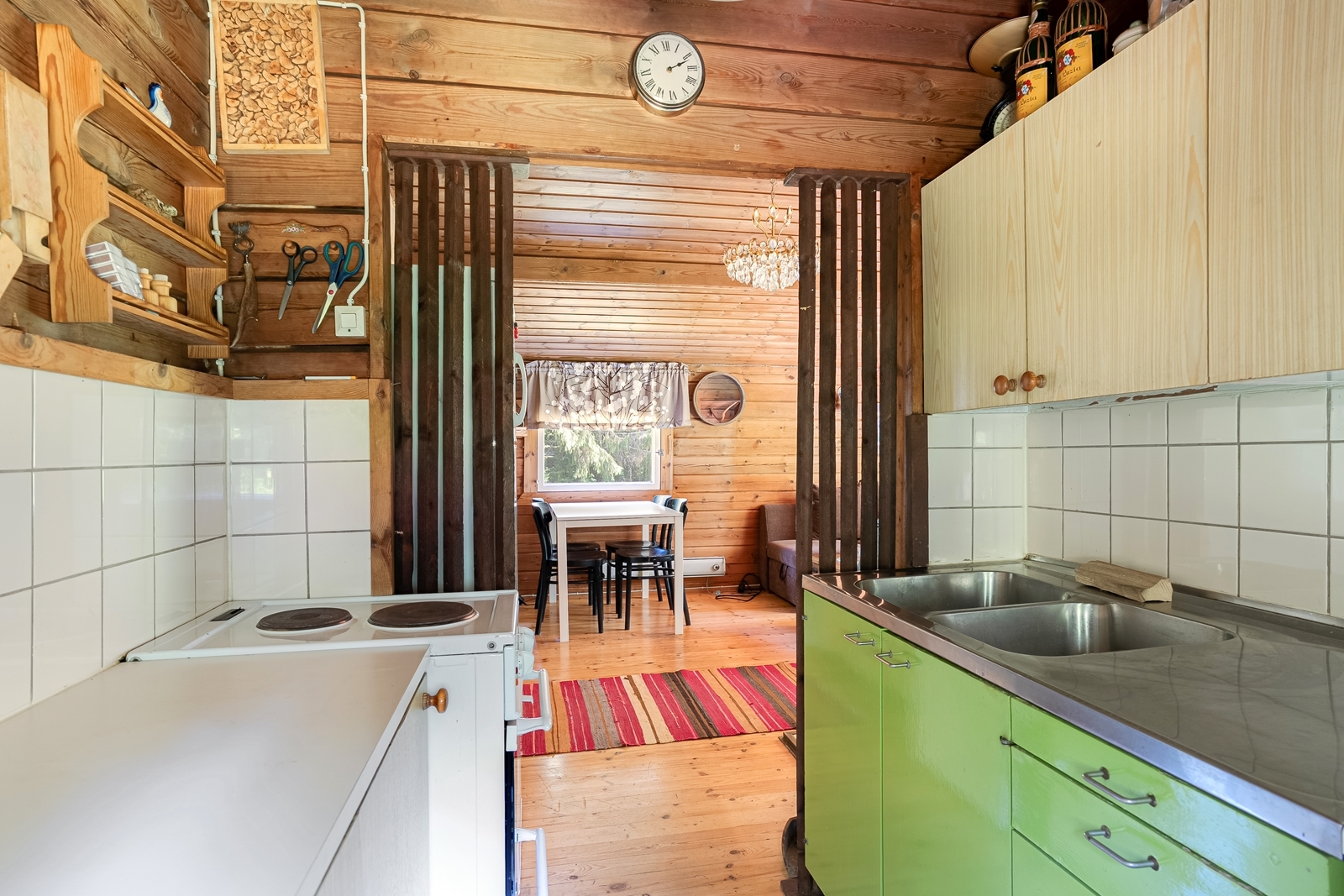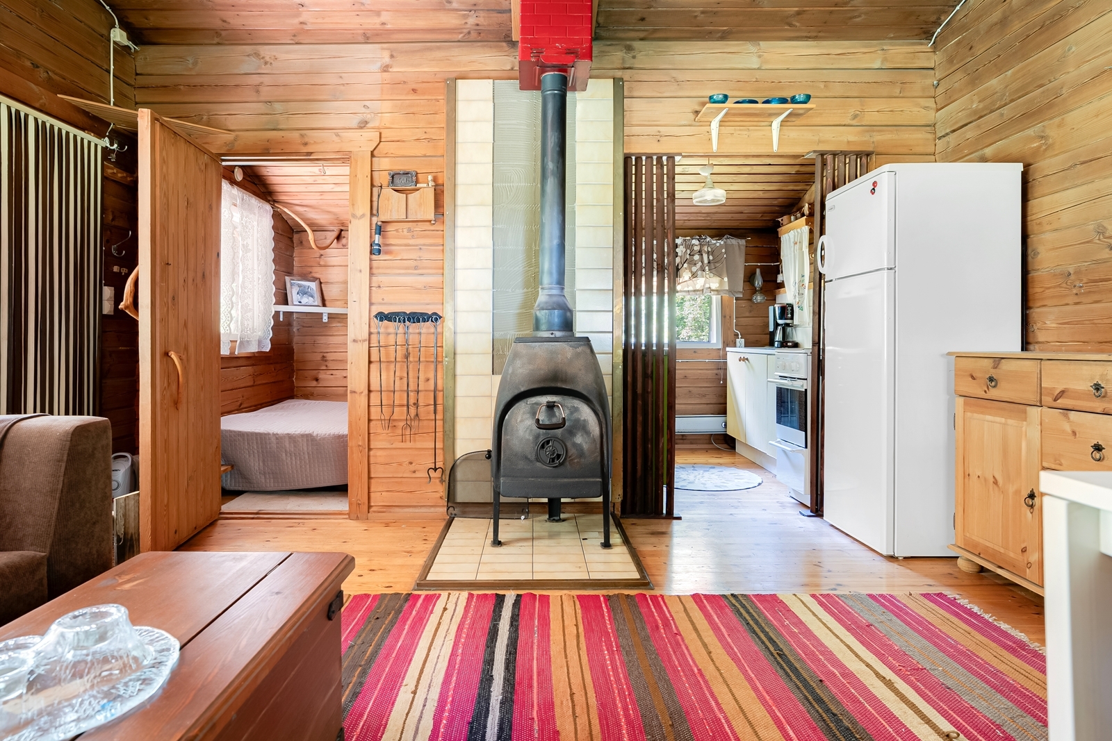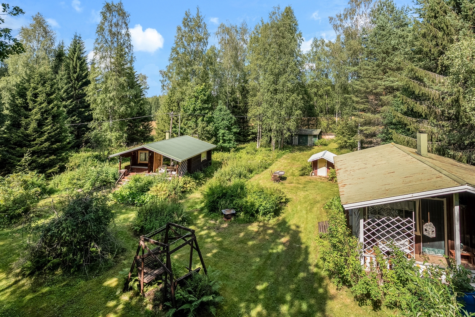 Tontilla on kaksi erillistä rakennusta. Varsinainen mökki on kooltaan 26 neliömetriä ja sisältää tupakeittiön sekä katetun terassin. Erillisessä 35 neliömetrin saunarakennuksessa on saunan lisäksi oleskelutilaa ja toinen terassi, josta avautuu näkymä joelle. Molemmat rakennukset tarjoavat mukavat ja toimivat tilat oleskeluun, ja ne sopivat hyvin myös pidempään majoittumiseen eri vuodenaikoina.
