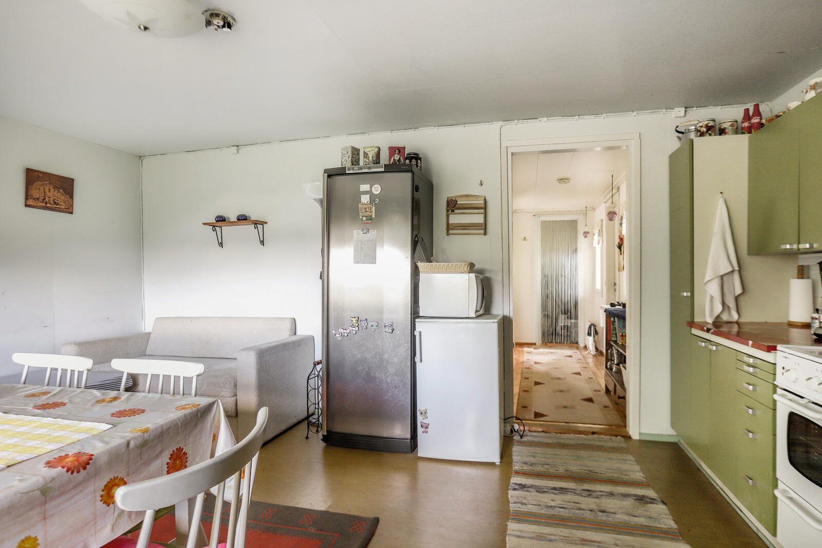Olohuoneen kuvaus Seinät (maali), lattiat (muovimatto)