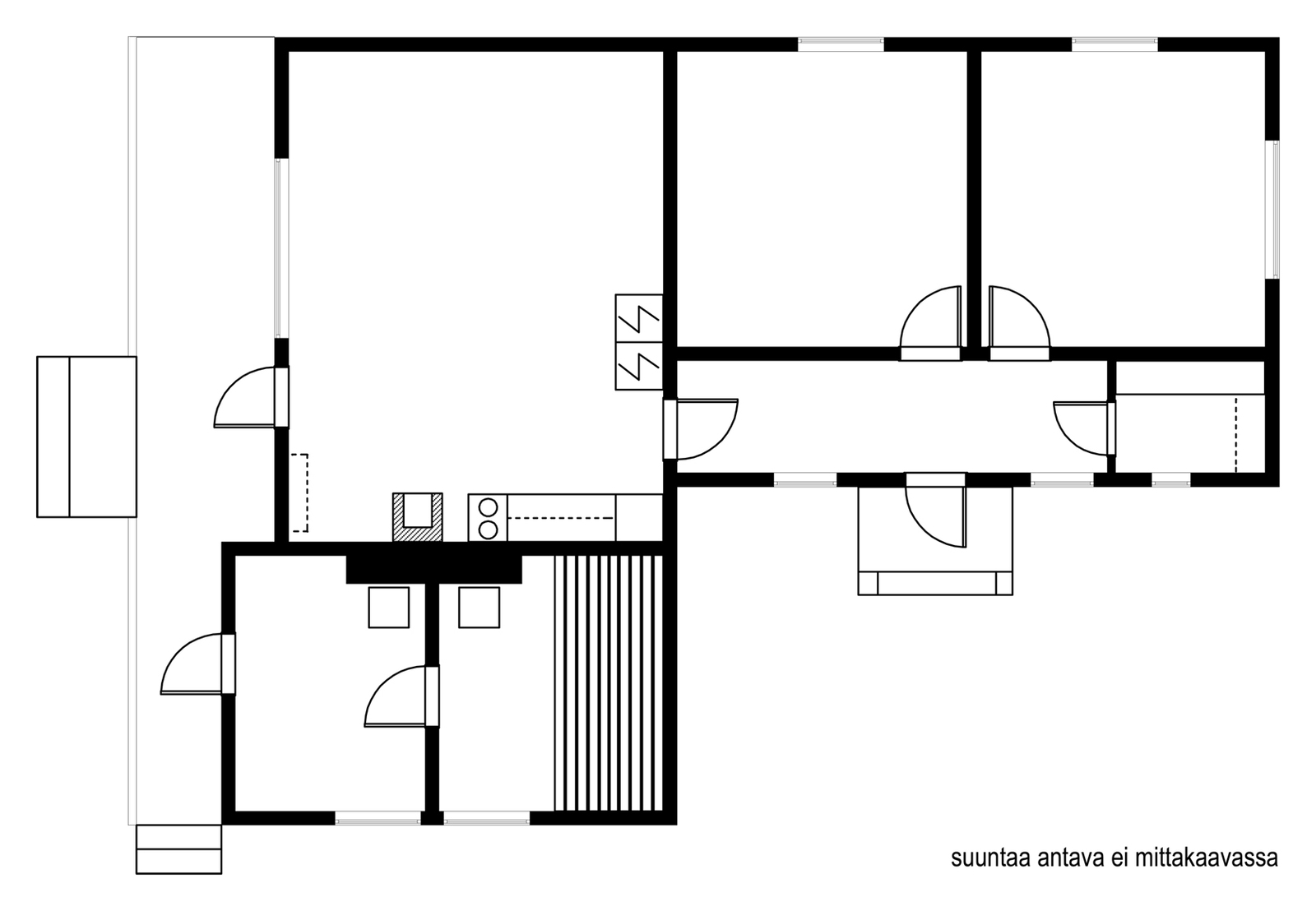 Huoneistoselitelmä Tupakeittiö+2mh+sauna+pukuhuone
