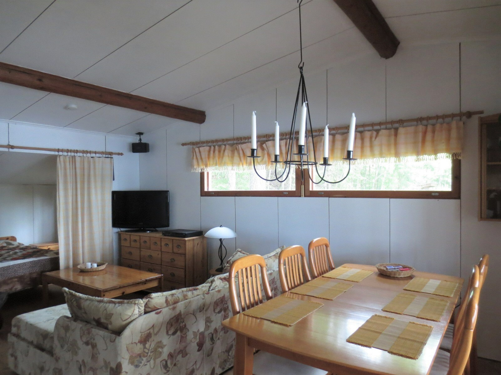Punkaharjun Pihlajavedellä luonnonvaraisella tontilla 70 -luvun sähköistetty mökki, jossa hyvänkokoinen tupa varustettuna muhkealla takalla, keittiö, makuualkovi ja makuusoppi.