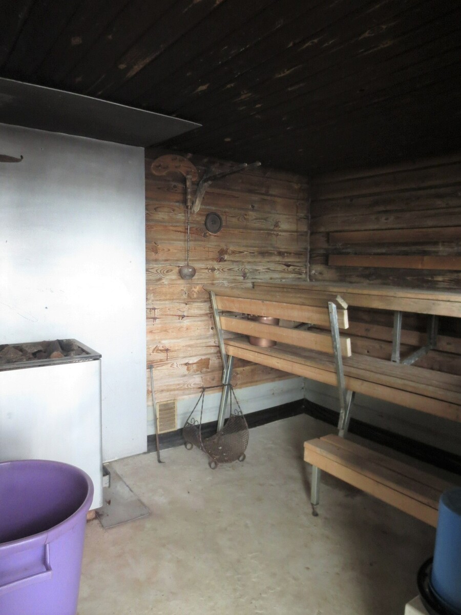 Seinät (puu), lattiat (betoni), Puukiuas |