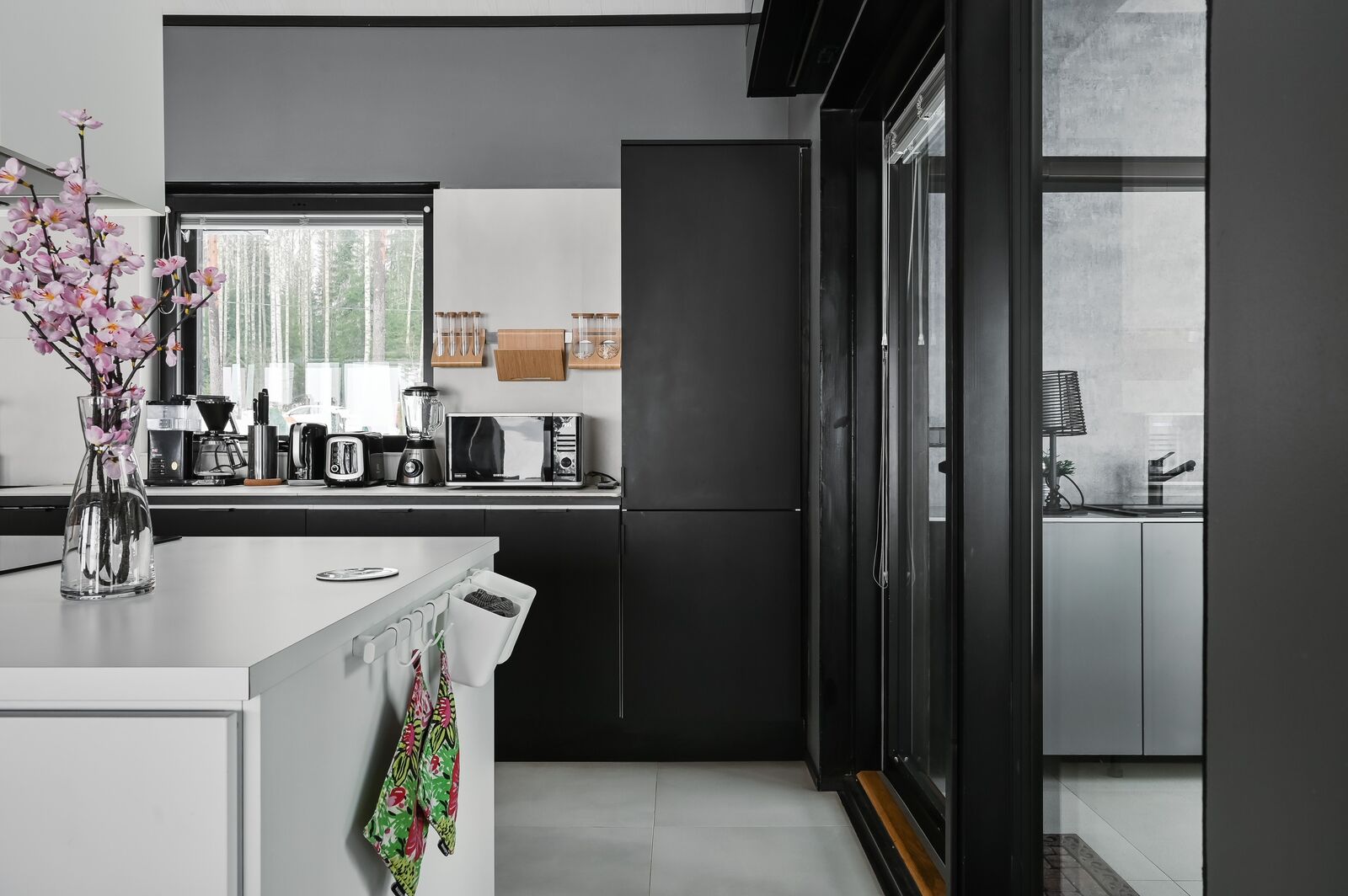 Lasitettu kesäkeittiö tarjoaa lisätilaa isommallekin ystäväporukalle.