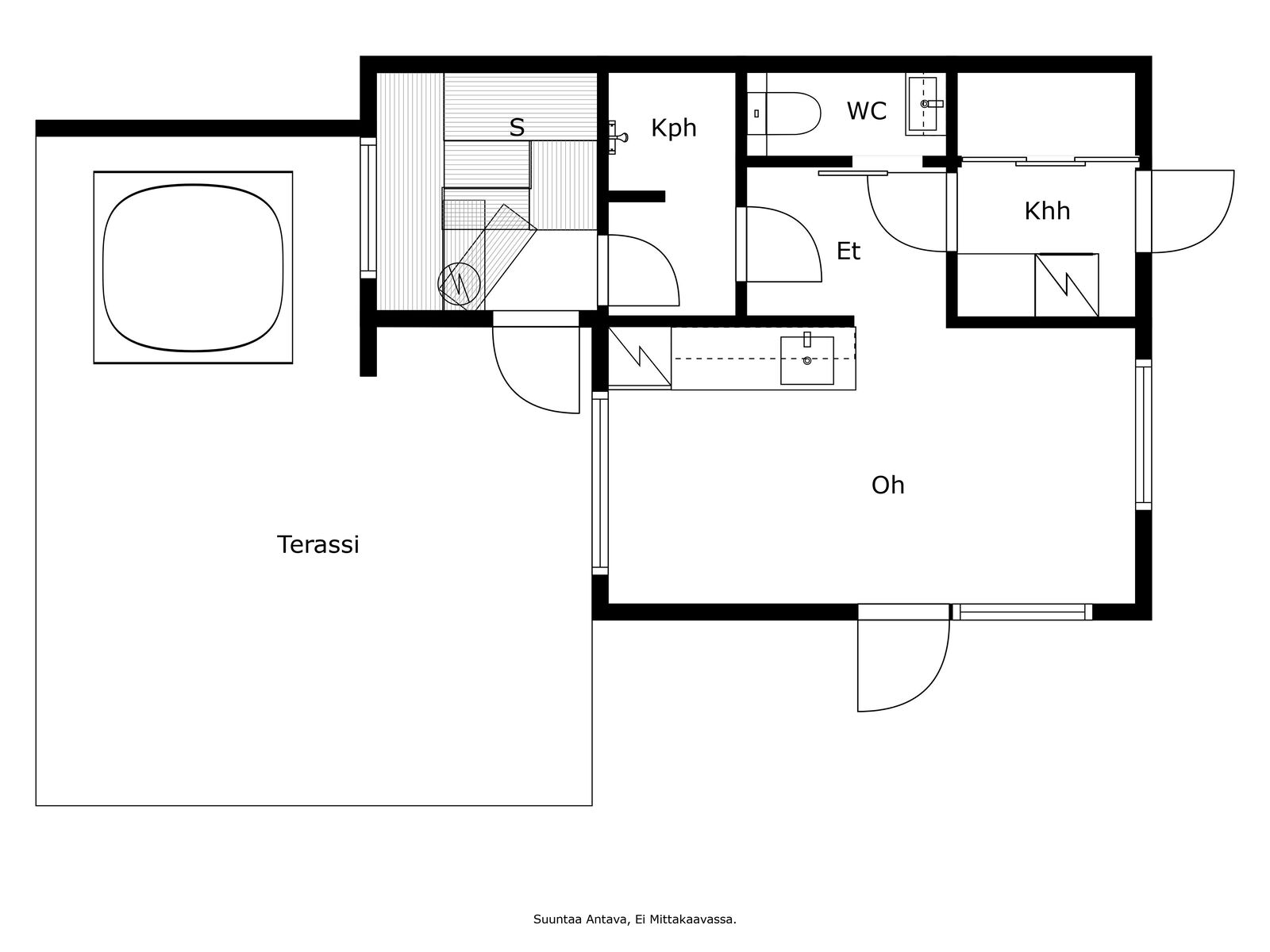 Et, 2mh, keittiö/olohuone avointa, 2 nukkumaparvea, wc/kh, kesäkeittiö |