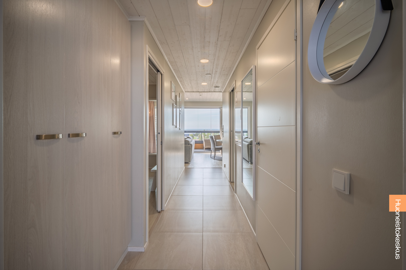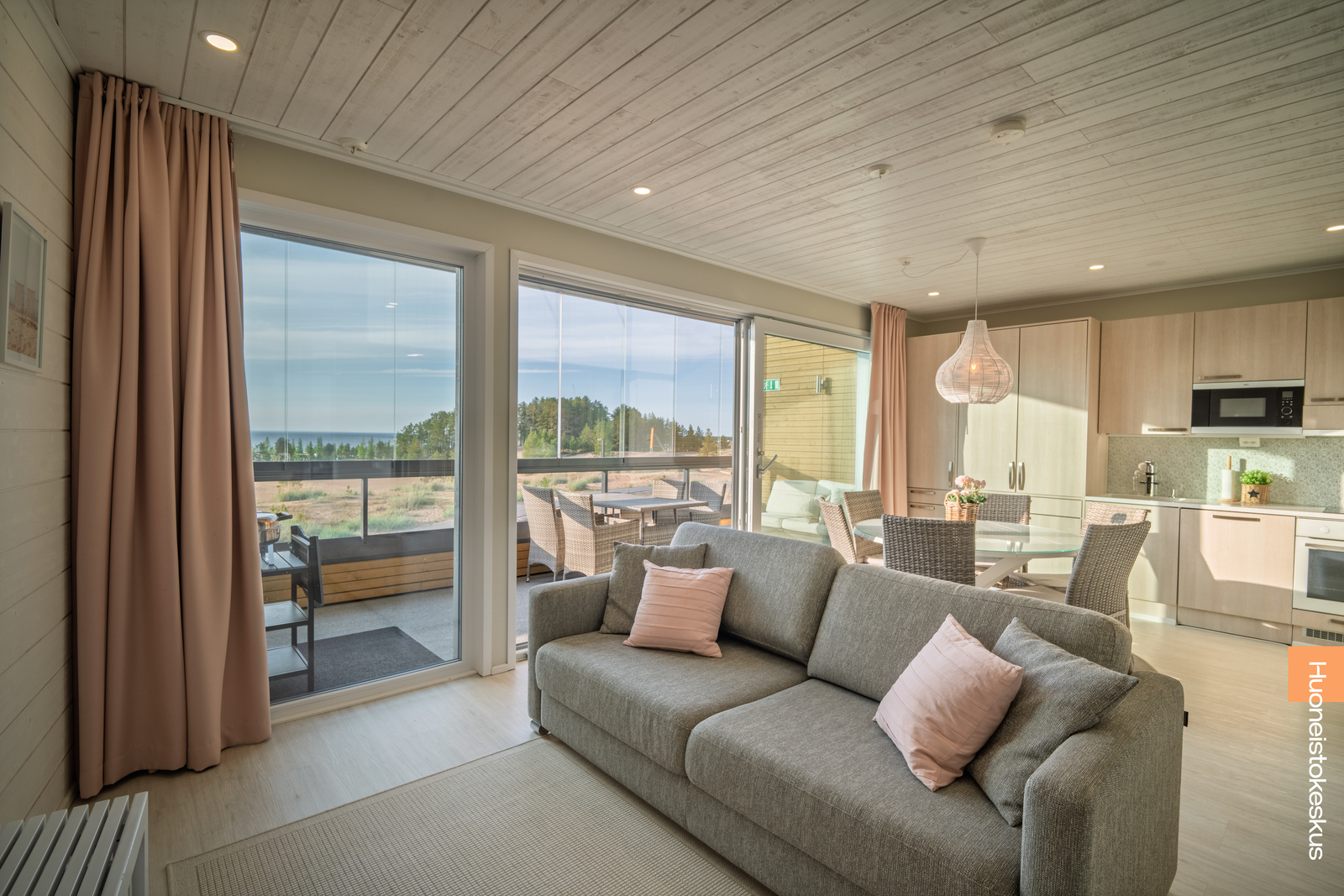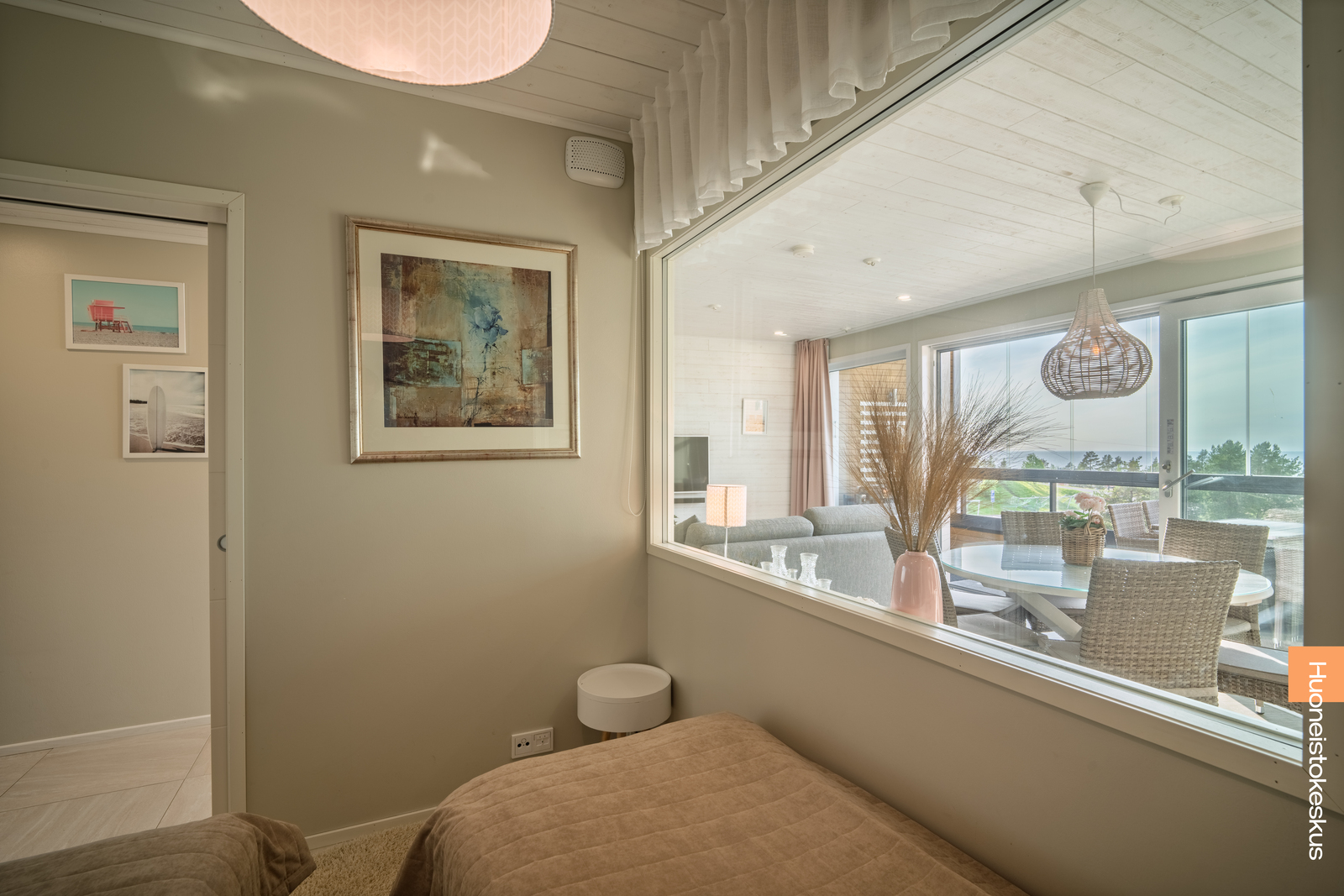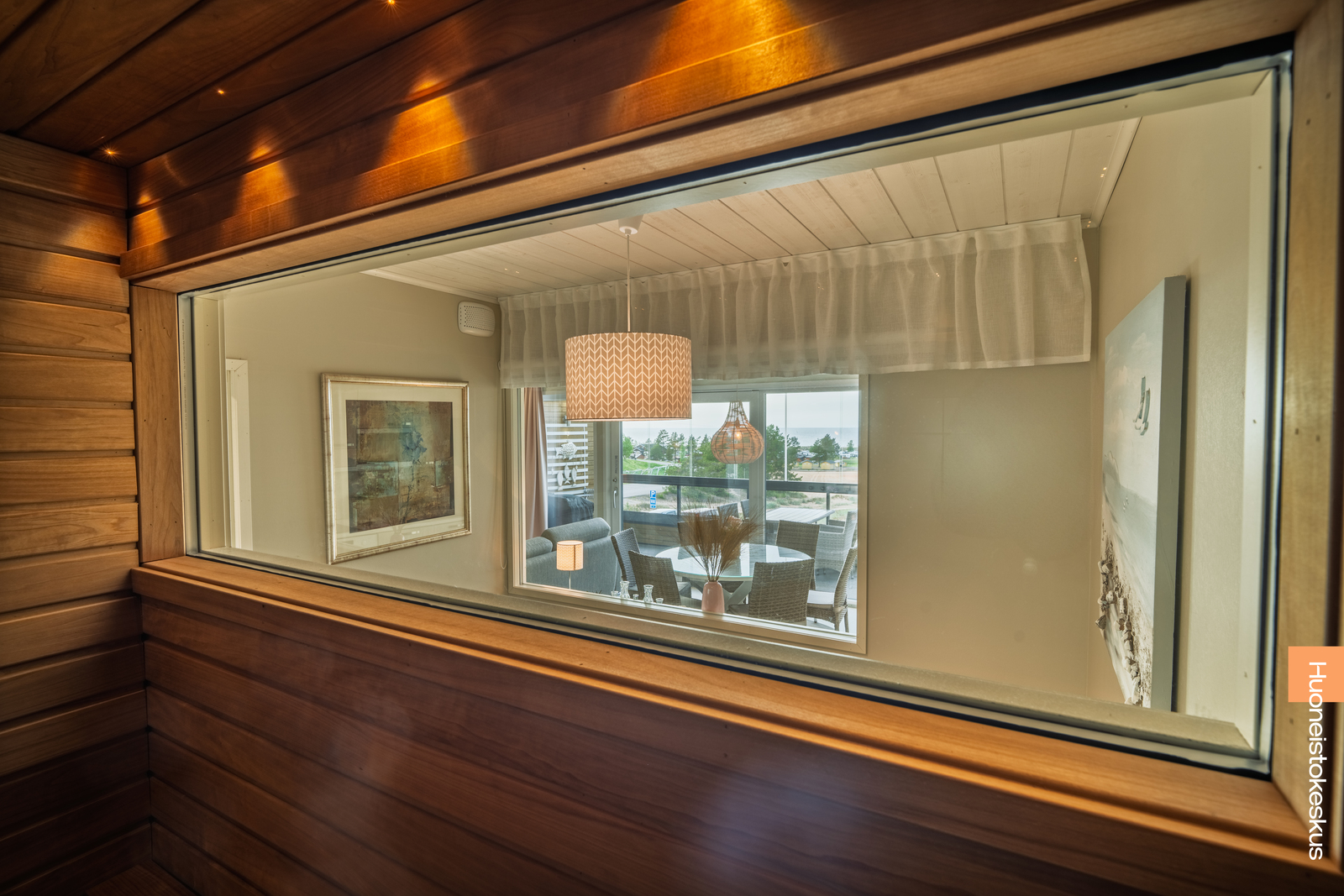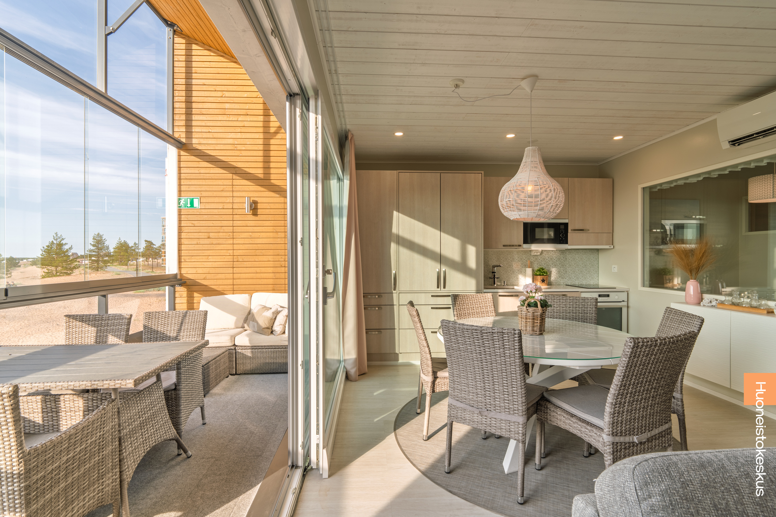Nyt myynnissä loistavalla merinäköalalla varustettu ylimmän kerroksen huoneisto, aivan Hiekkasärkkien palveluiden vieressä. Asunnossa tilava tupakeittiö, kaksi makuuhuonetta, vaatehuone, kylpyhuone ja oma sauna. Sisäikkunat tuovat maiseman hienosti esiin myös makuuhuoneista ja saunasta. Lasitettu parveke antaa lisää oleskelutilaa asuntoon.
