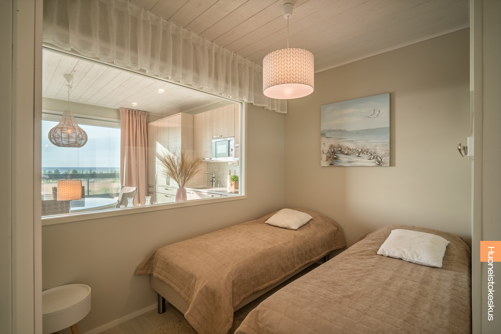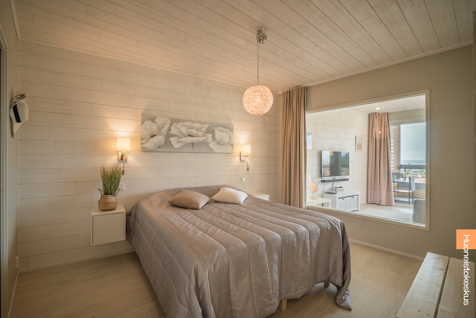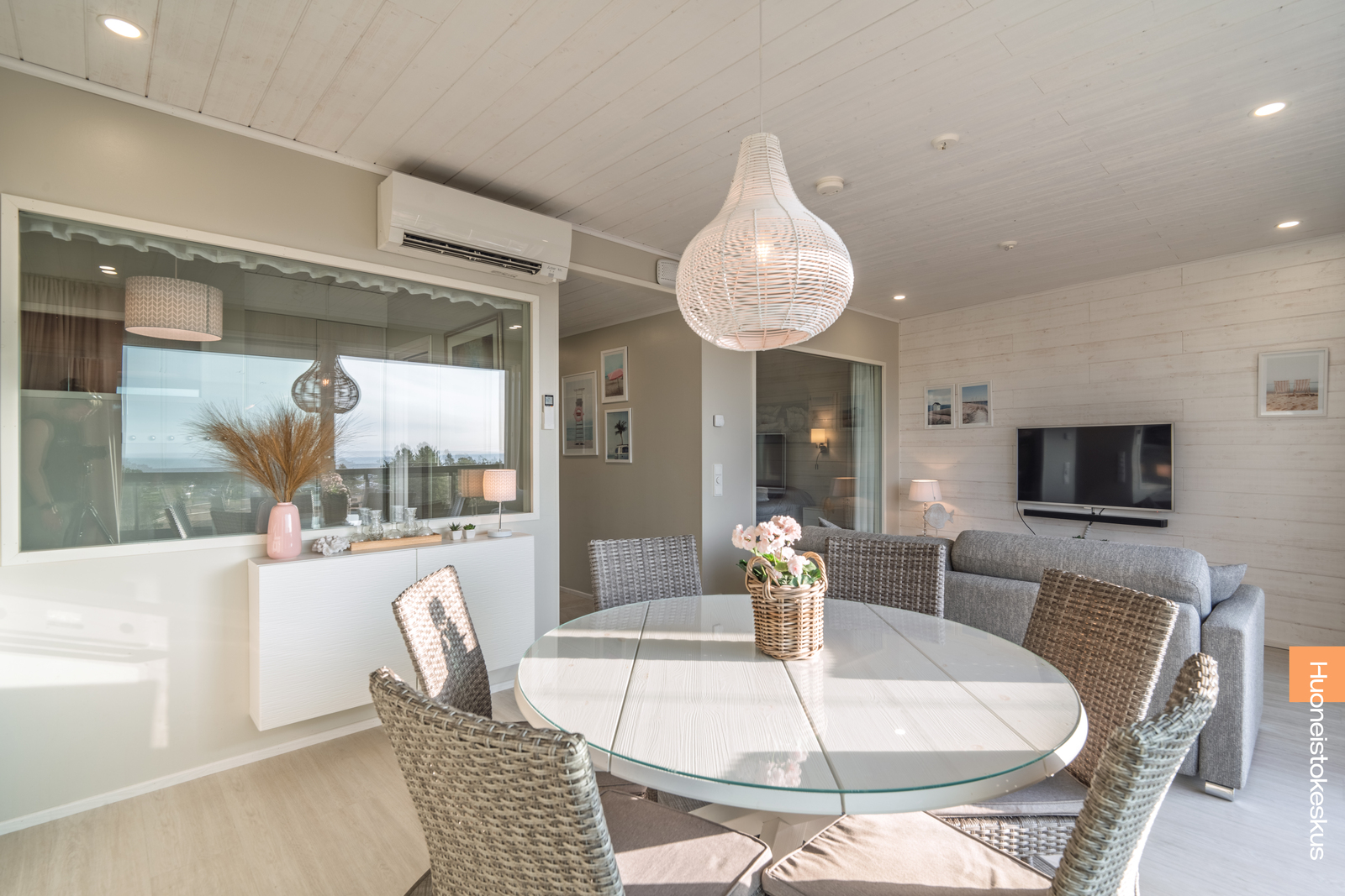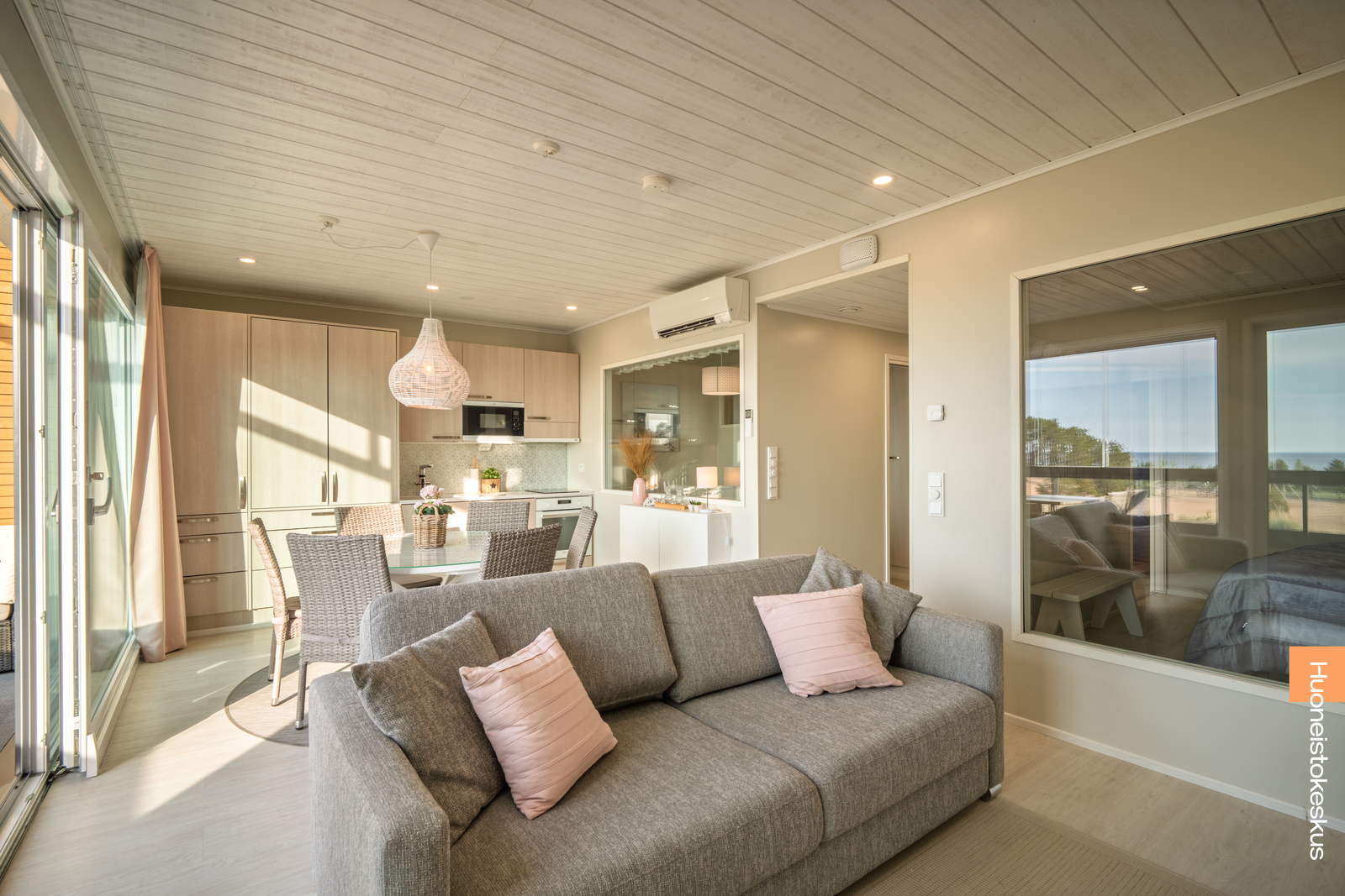 Huoneisto myydään täysin kalustettuna ja varusteltuna, joten kohde on heti valmis lomailuun tai sijoituskäyttöön. Varustelutasoon on satsattu rakennusvaiheessa ja asunnosta löytyykin tyylikkäät pintamateriaalit, tilaa säästävät liukuovet ja viilentävä ilmalämpöpumppu. Keittiössä aamiaiskaappi, kivitaso ja integroidut kodinkoneet. Ulkoiluvälineille oma varasto sisäänkäynnin vieressä.