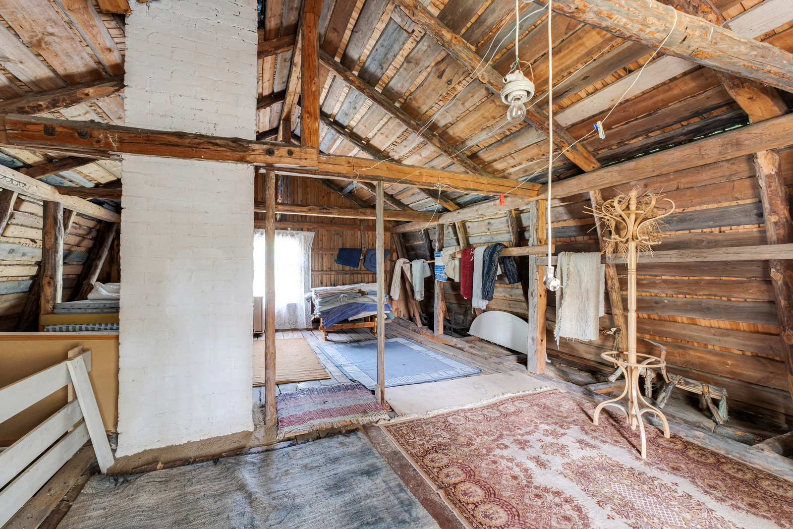 yläkerta rakentamatonta avointa tilaa, sisä wc paikkaa tehty yläkertaan menevien rappujen eteen. |