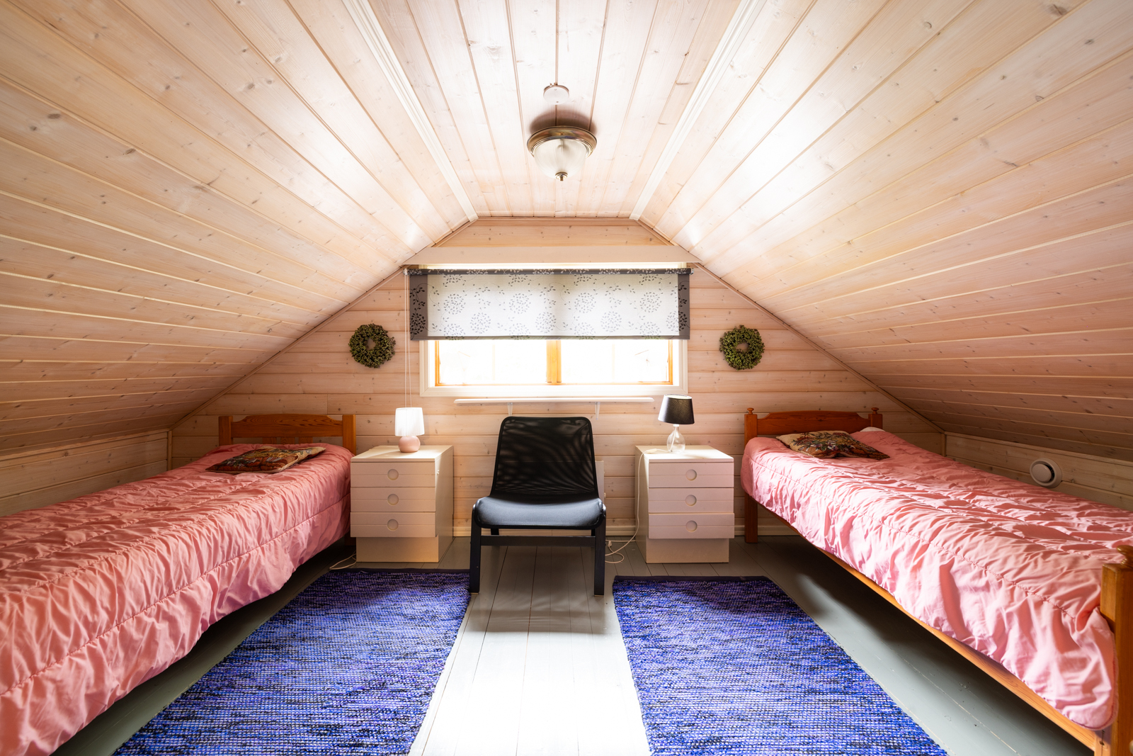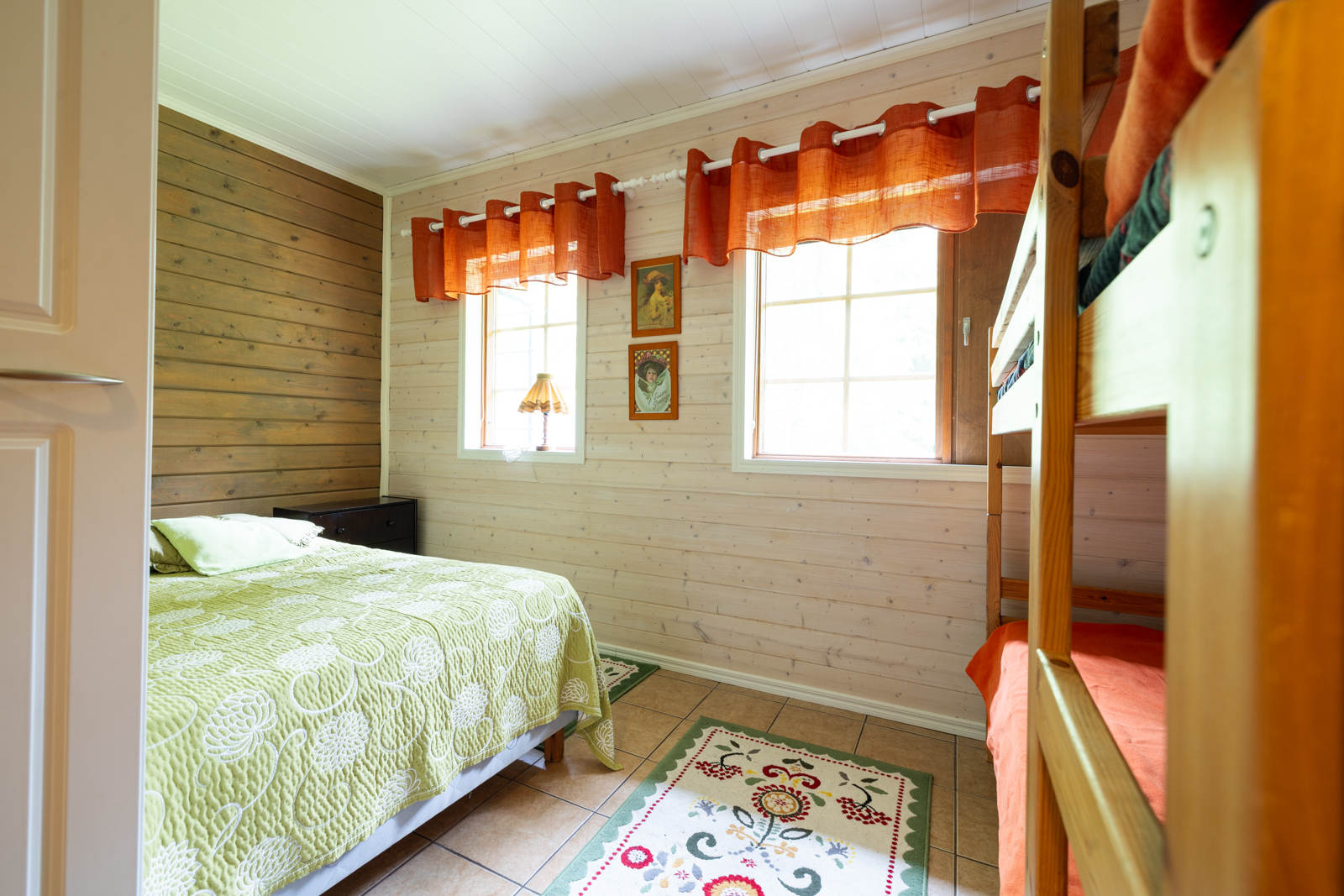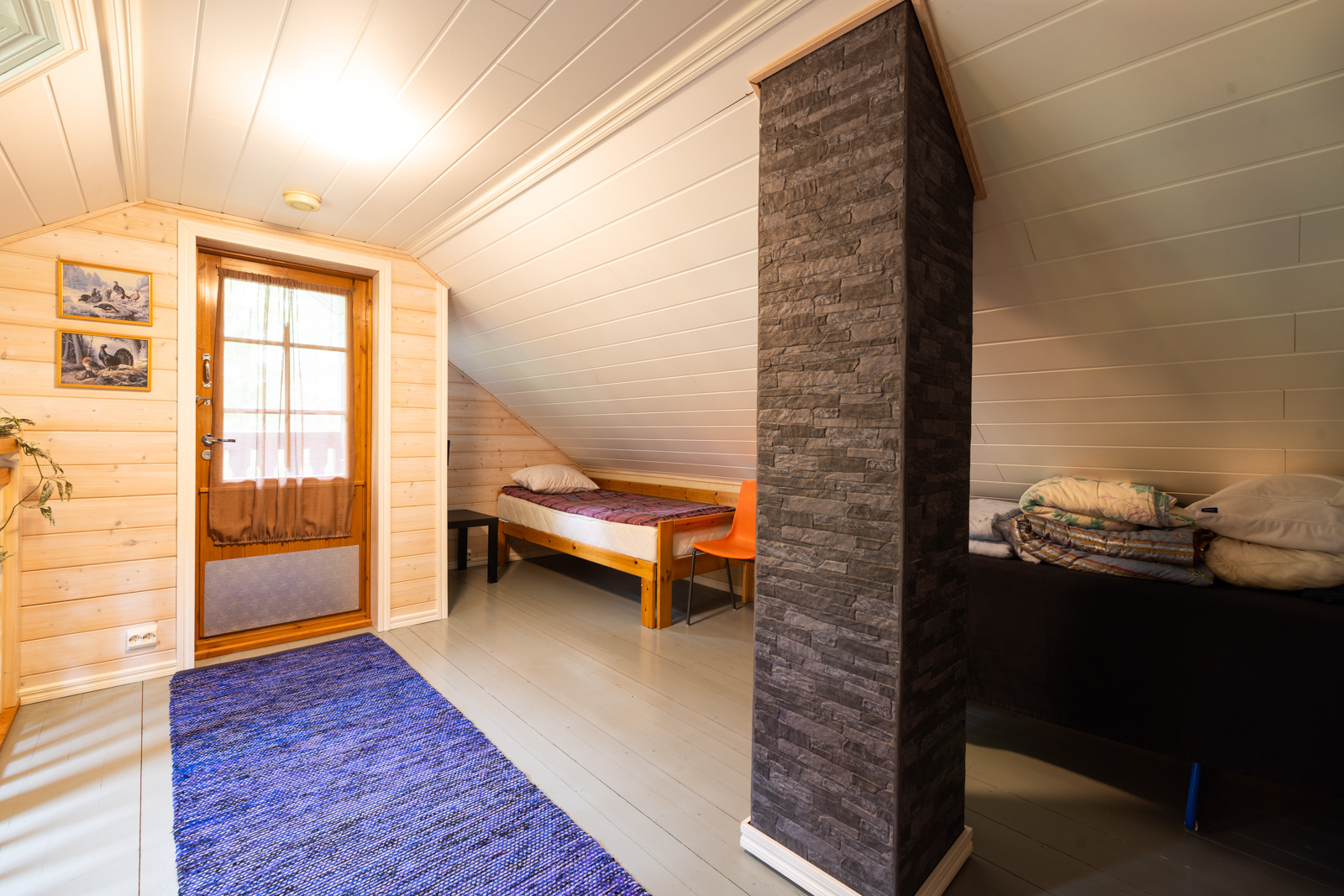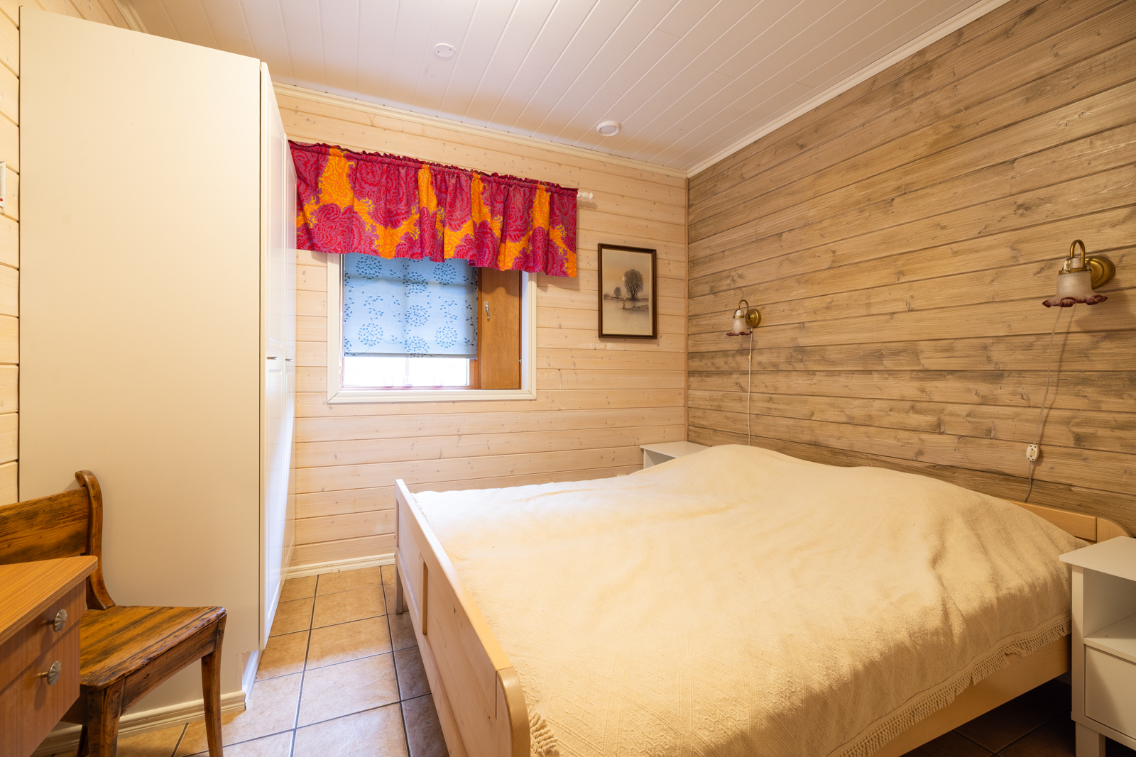 | Makuuhuoneen kuvaus | Lukumäärä: 3, seinät (puu), lattiat (laatta) |
