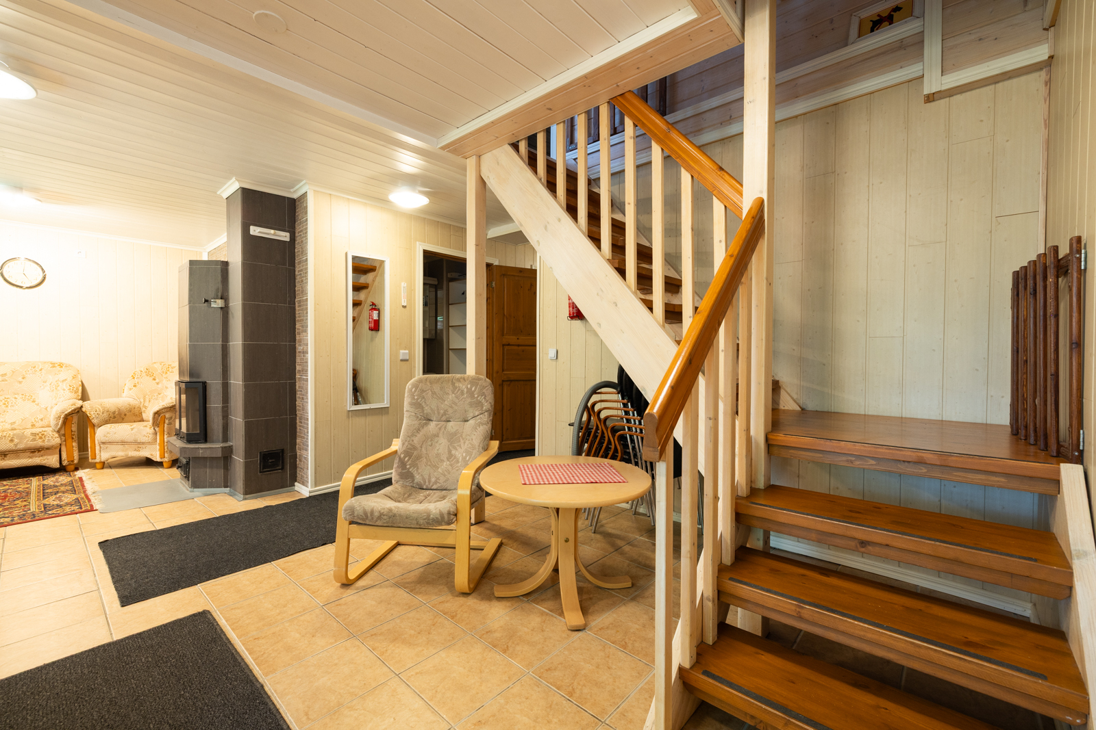 | Olohuoneen kuvaus | Seinät (puu), lattiat (laatta) |