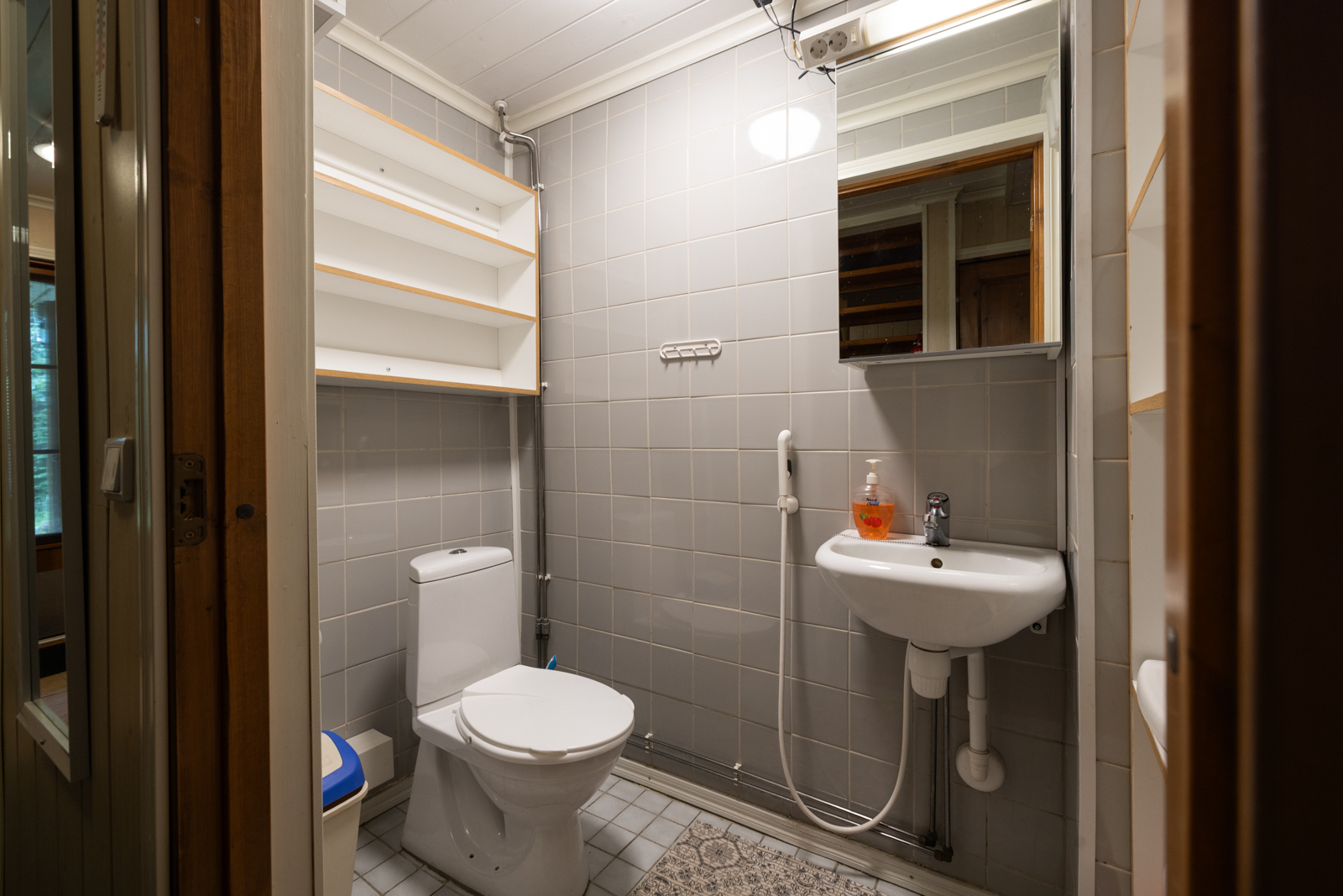 | Kylpyhuoneen kuvaus | Lattialämmitys, suihku ja kiinteät valaisimet, seinät (kaakeli), lattiat (laatta) |
