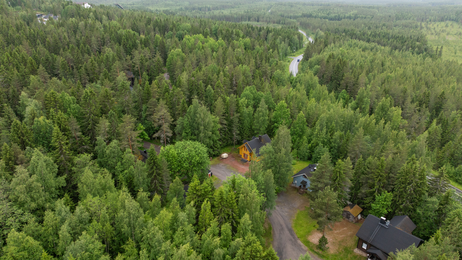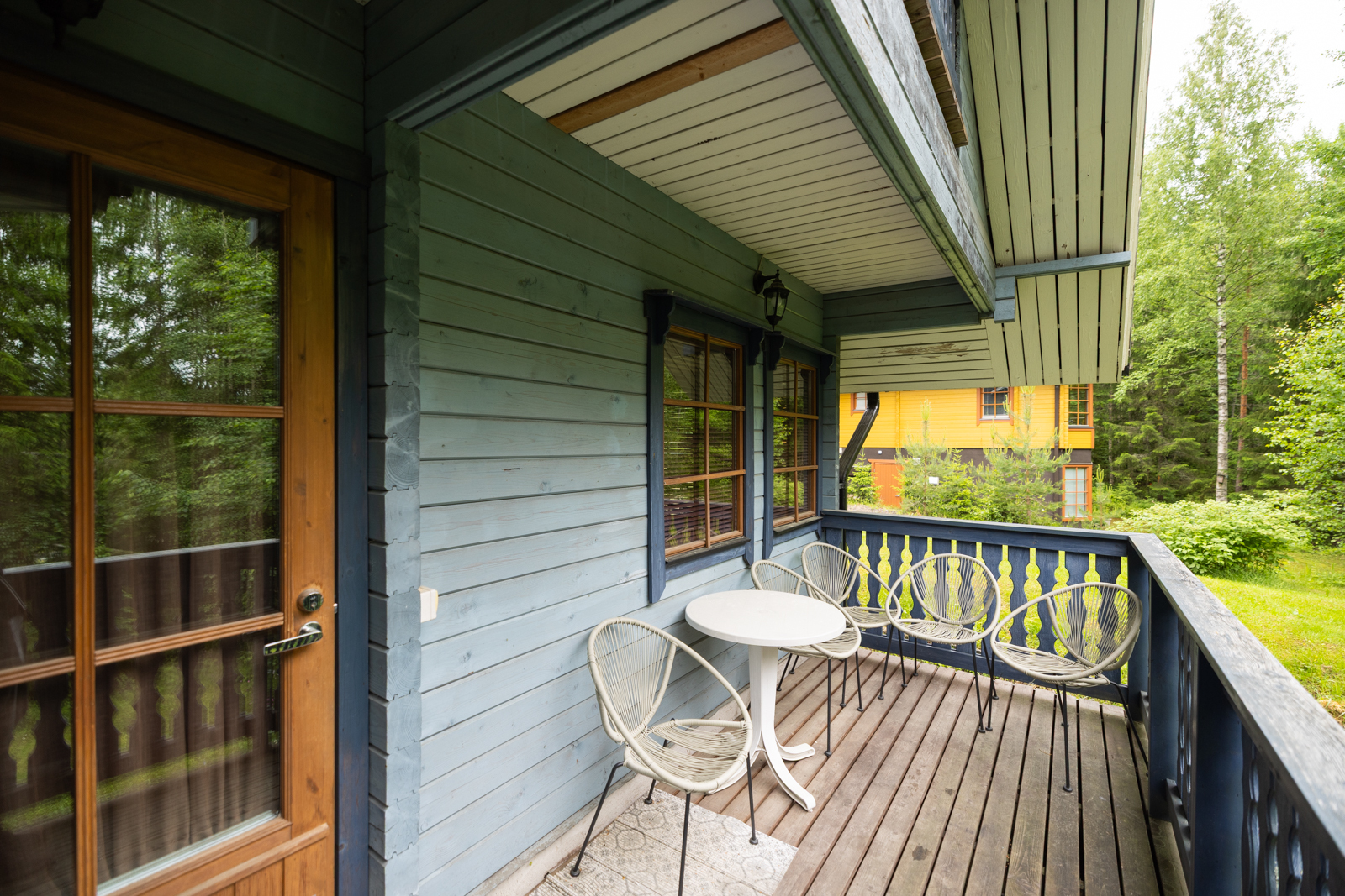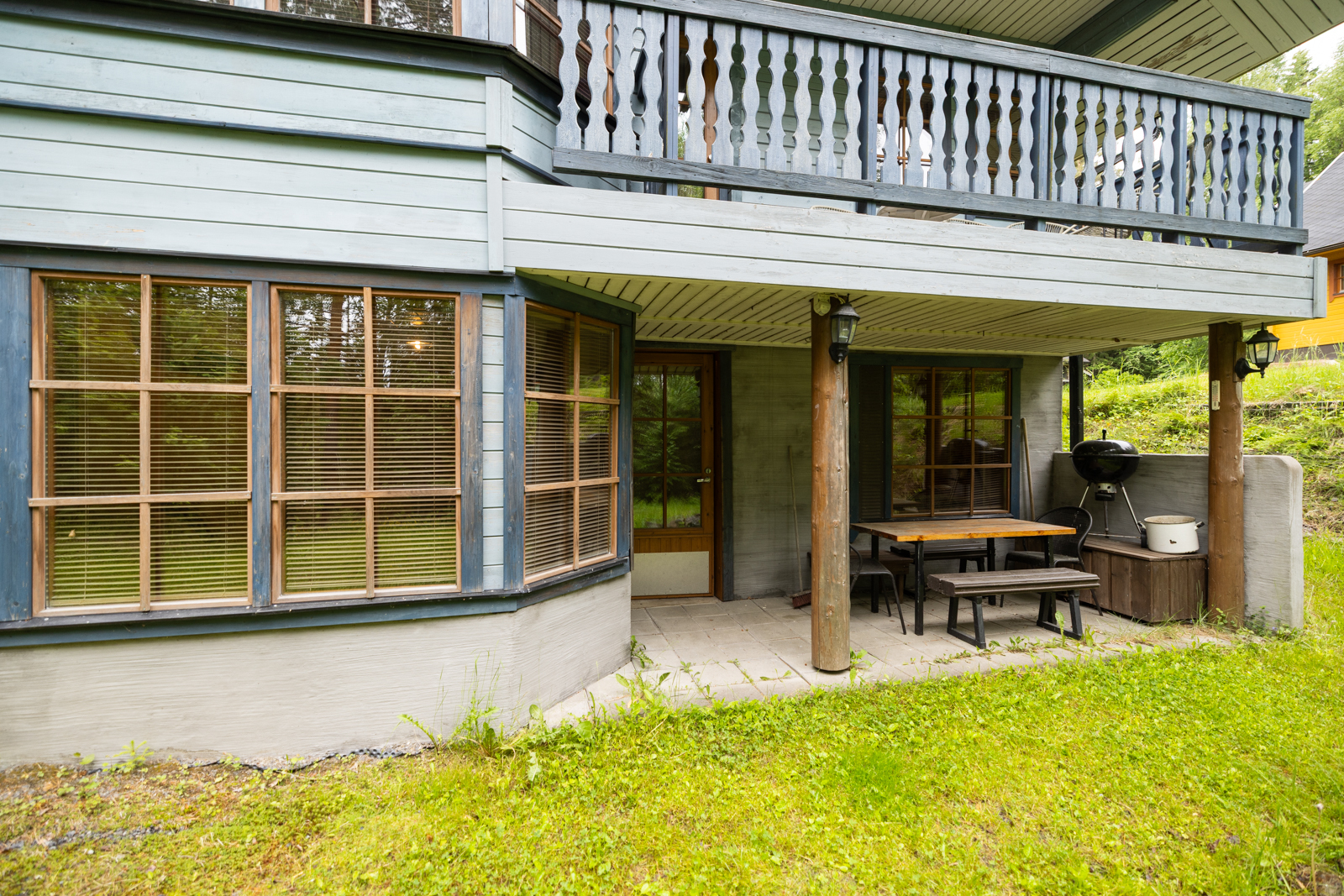| Muut huoneet ja tilat | Eteisen lattiassa laatta, seinät puu ja katossa puupaneeli. Yläkerran lattiassa lautalattia, seinät puu katossa puupaneeli. Takkahuoneessa laattalattia, seinät ja katto puuta. |