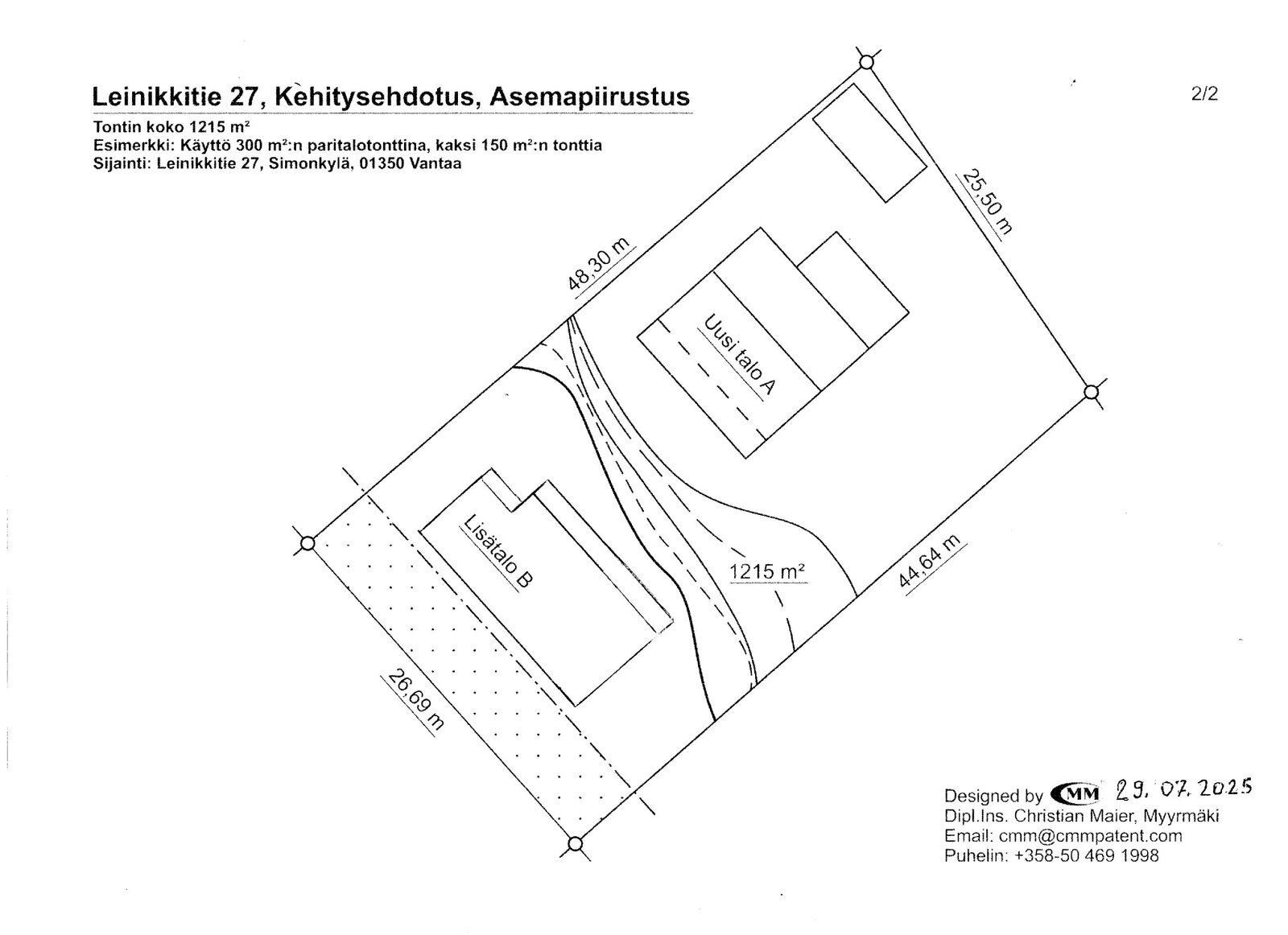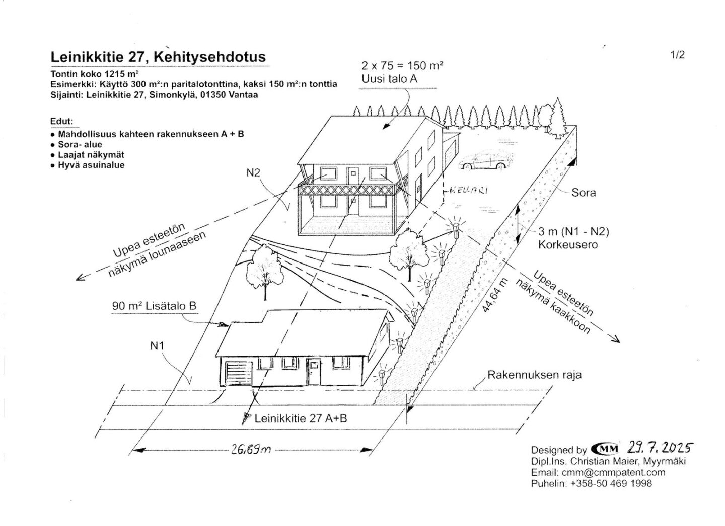 Aurinkoiselta rinnetontilta erinomainen rakennuspaikka joko omakotitaloille tai tarvittaessa kolmelle asunnolle. Tontille saa rakentaa olemassa olevan asuinrakennuksen lisäksi yhden asuinrakennuksen, siten että tontilla on korkeintaan 3 asuntoa. Tontilla sijaitsevat nykyiset rakennukset myydään purettaviksi. Purkukustannuksista vastaa ostaja. Vesi-, viemäri- ja sähköliittymät siirtyvät kaupanteossa.