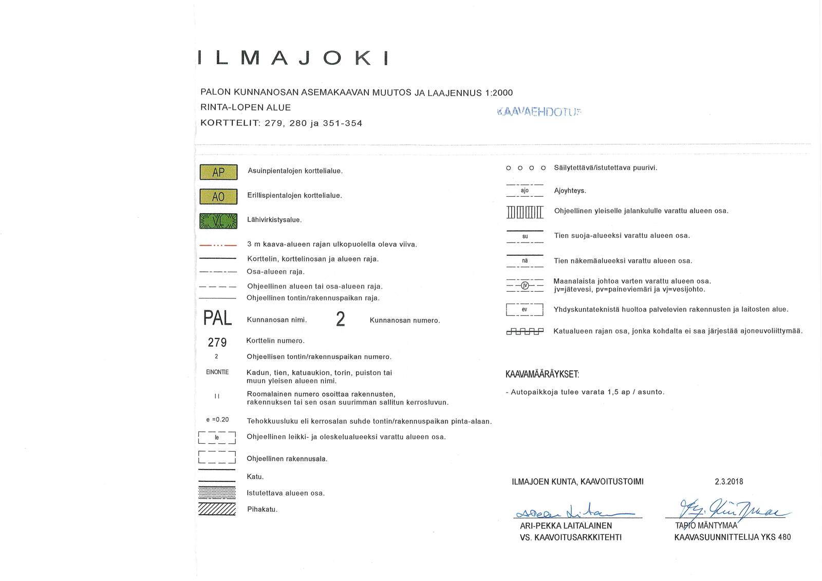 | Kaavoitustiedot | Ilmajoen kunta 06-4191 111. Kaavamerkintä AP II. e = 0,20. |