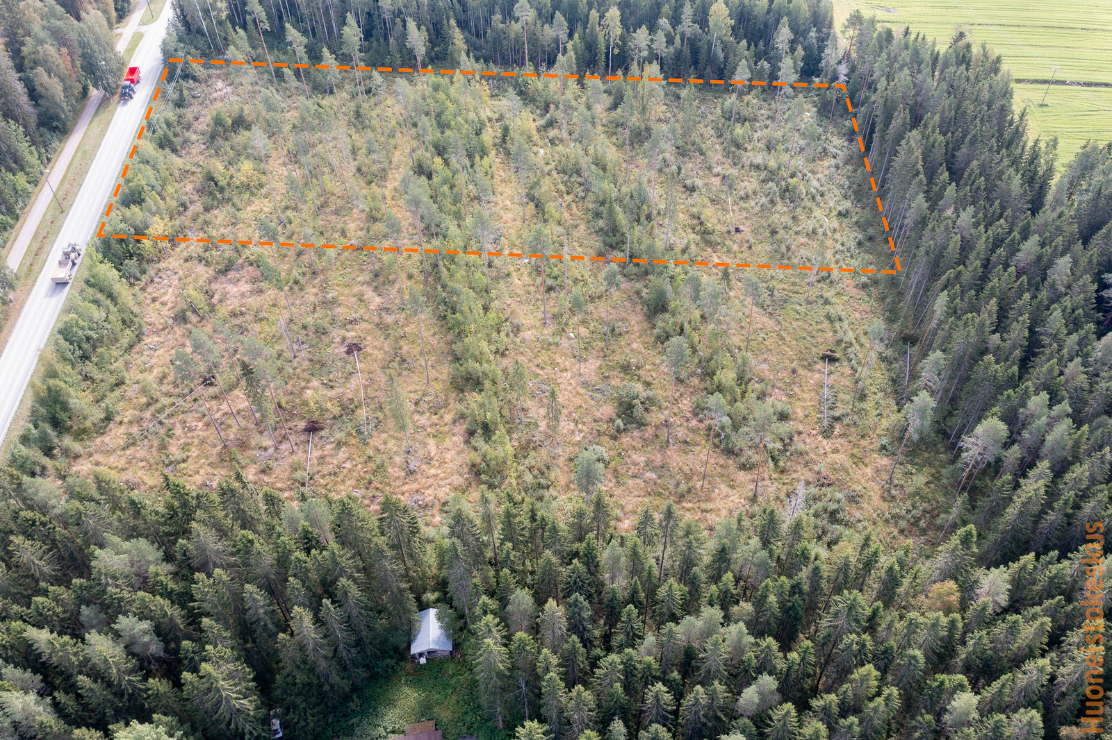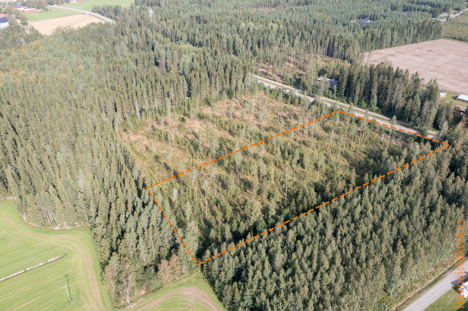 Määräalalla osittain puusto päällä.