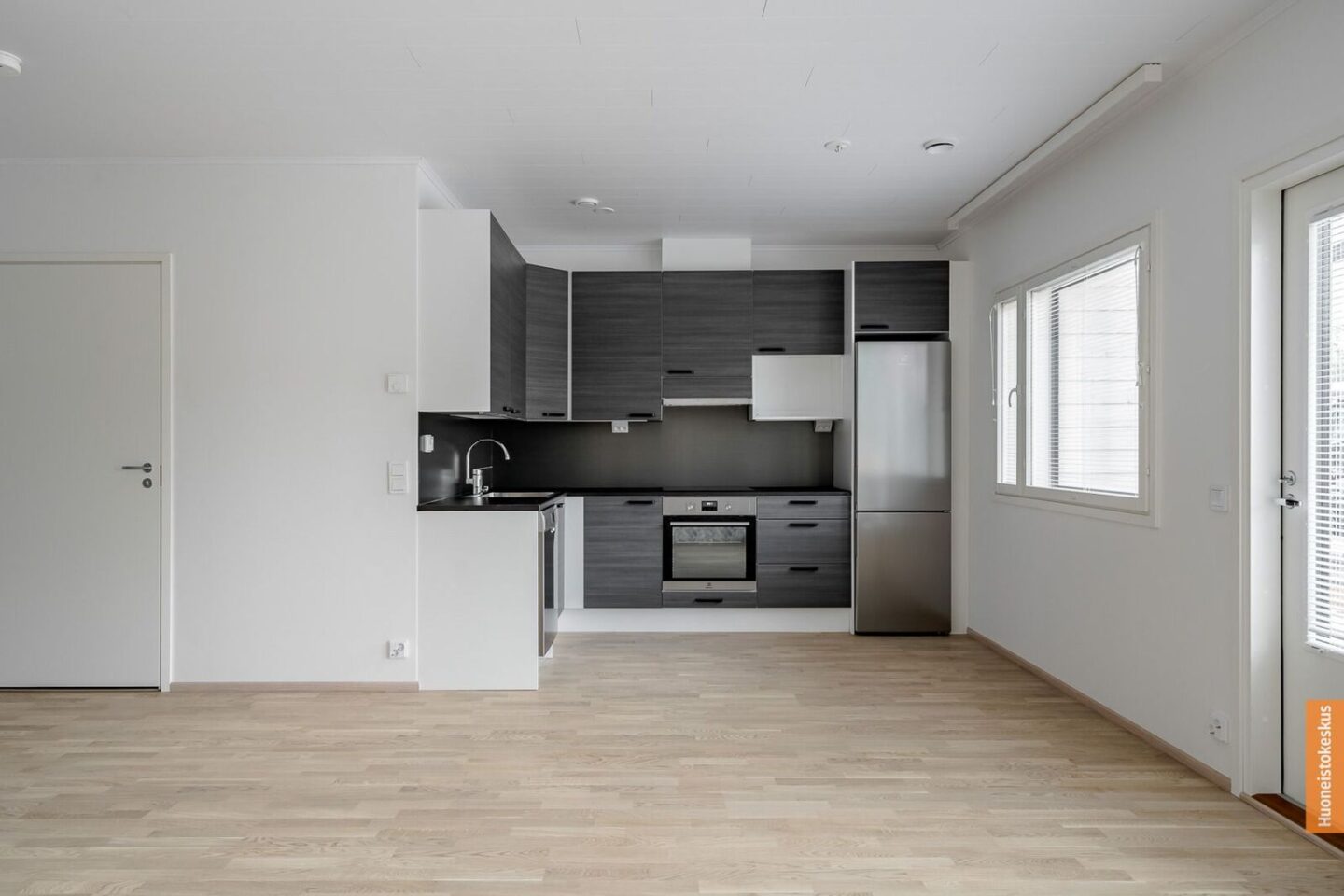 Asunnossa on erinomainen pohjaratkaisu. Avokeittiö ja olohuone ovat yhtenäistä tilaa, joka lisää tilan tuntua.