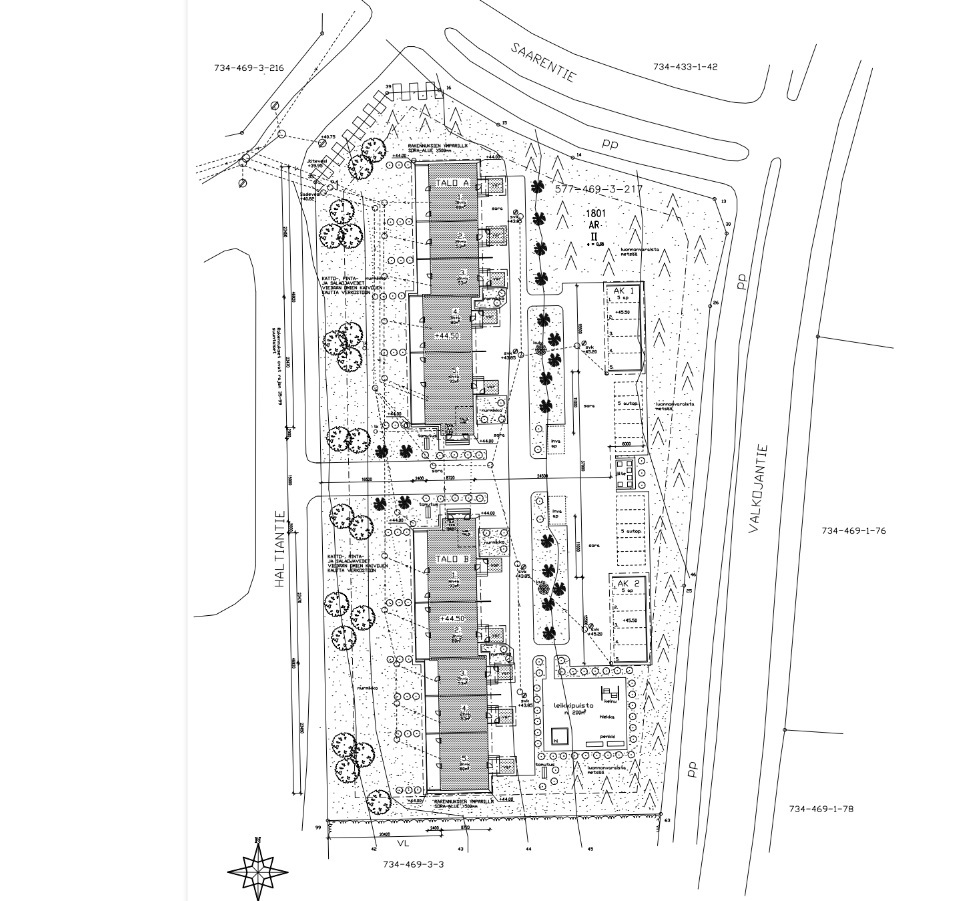 Ennakkomarkkinoinnissa Asunto Oy Paimion Haltiantie 2. Se koostuu kahdesta yksitasoisesta rivitalosta, joissa yhteensä kymmenen asuntoa.