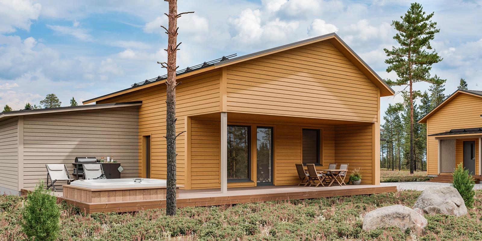 Lisävarustepaketilla 5000€ saatavilla havainnekuvan mukainen terassilaajennus sekä laadukkaammat kodinkoneet integroituna.