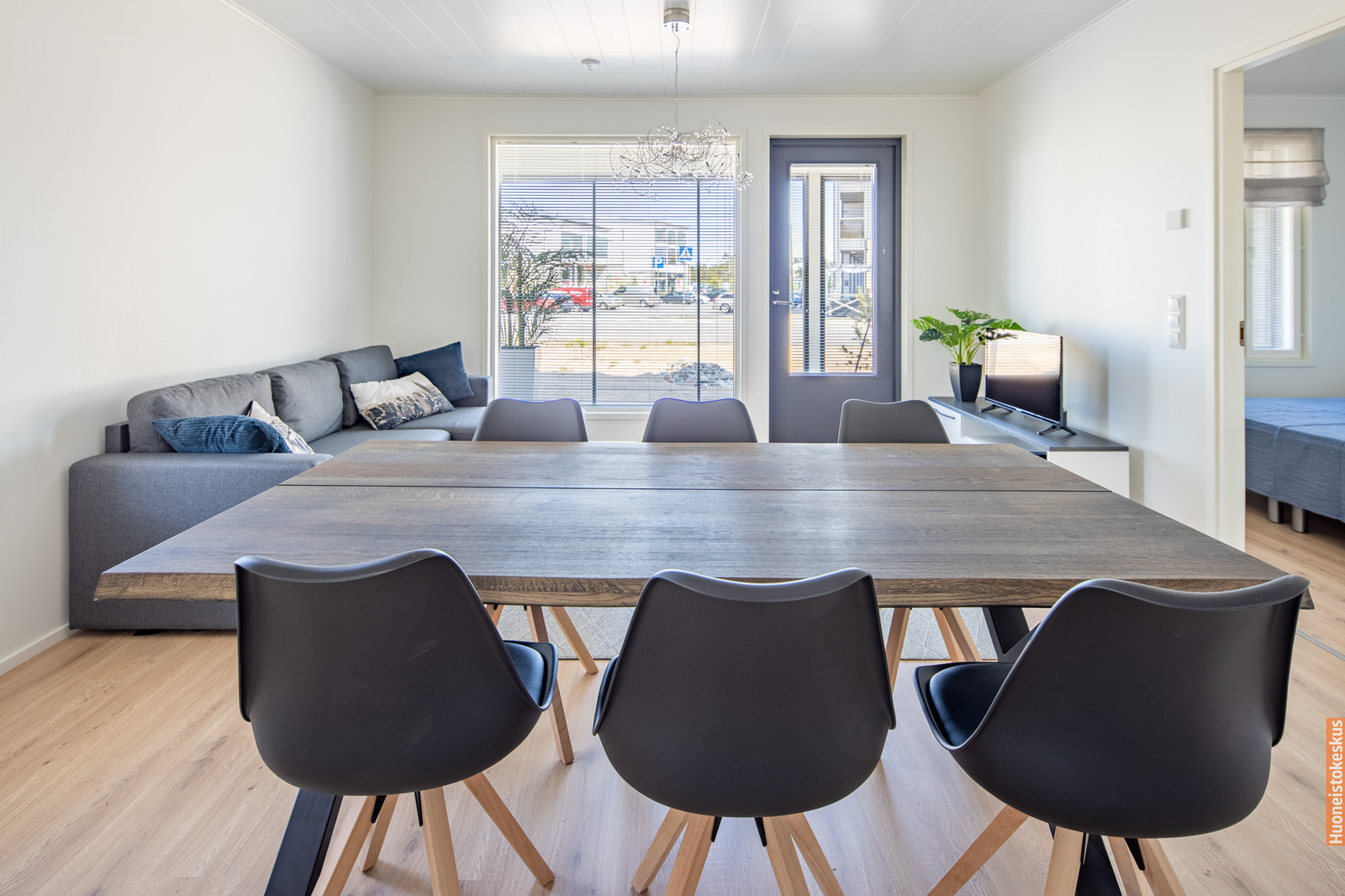 Loistava vaihtoehto kompaktia kotia tai vapaa-ajan asuntoa etsivälle. Asunnossa kaksi makuuhuonetta, tupakeittiö, pesuhuone kodinhoitotilalla sekä oma sauna. Asunnon yhteydessä autokatospaikka ja tilava lämpöeristetty varasto. Katettu terassi jota mahdollisuus laajentaa avoterassilla havainnekuvan mukaisesti.