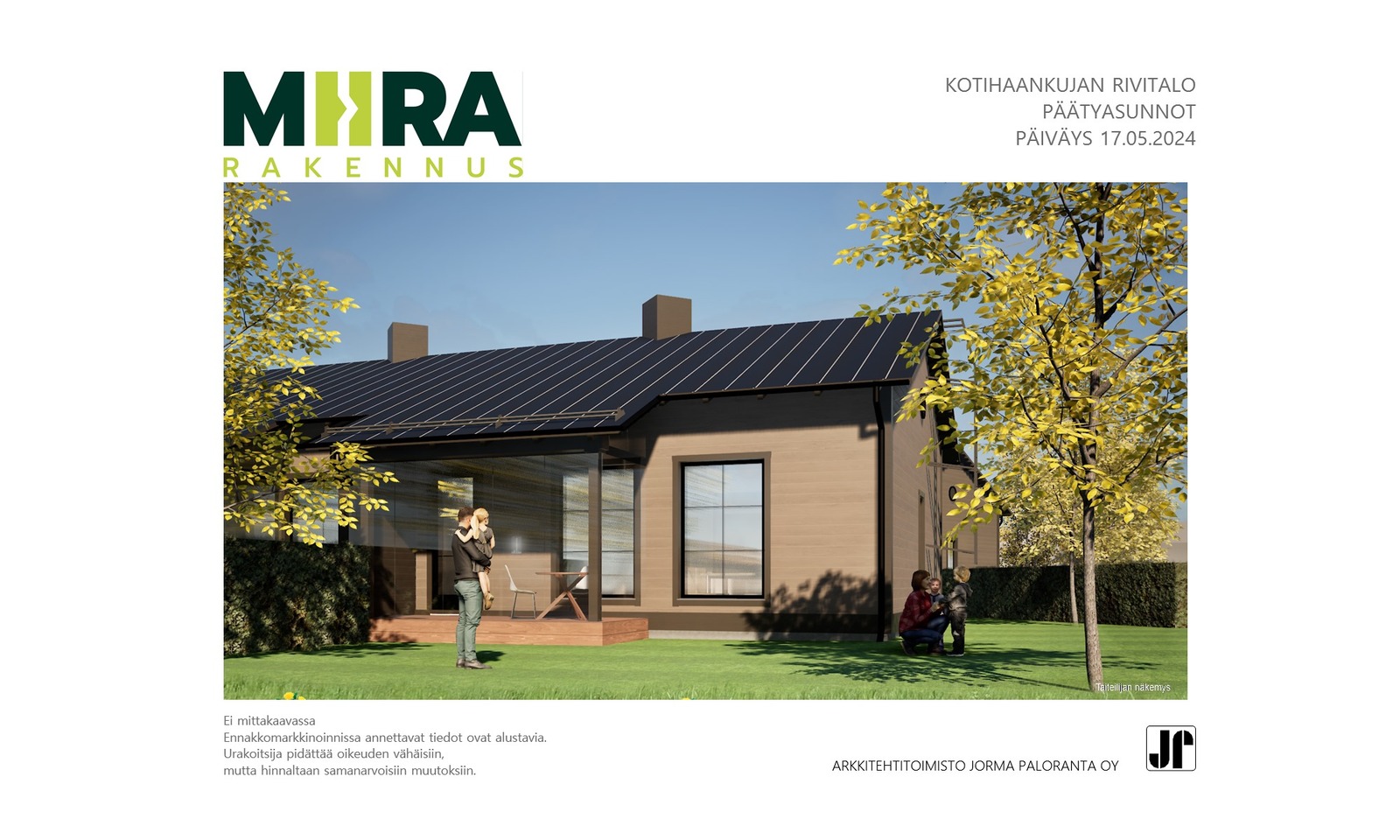 Nyt ennakkomarkkinoinnissa laadukas rivitaloyhtiö Pirttirannan alueella.