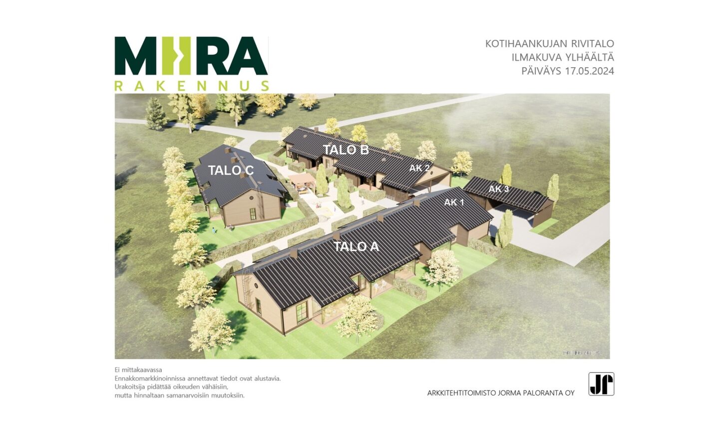 Kysy lisää ja tee varaus mieleisestäsi asunnosta. Rakentaminen käynnistyy kun riittävä määrä asunnoista on varattu.
