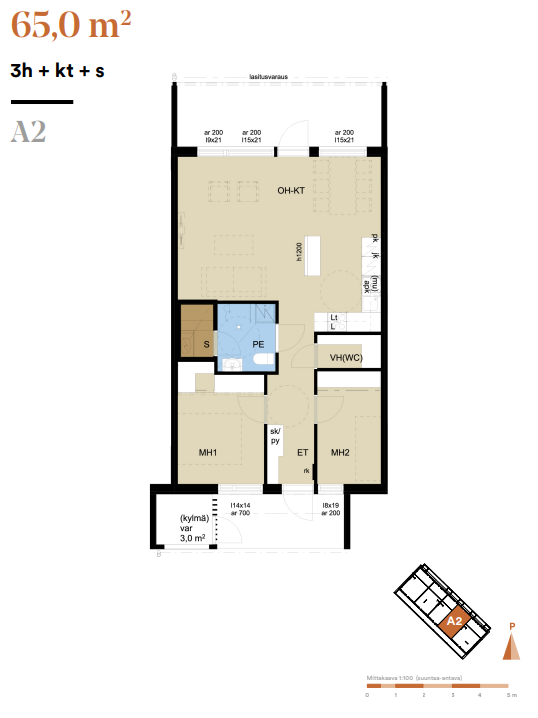 | Kokonaispinta-ala | 65 m² |