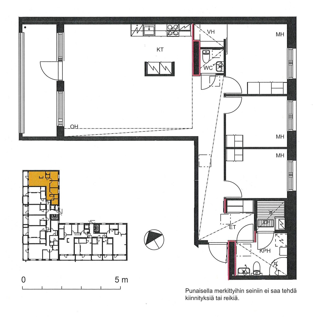 4h,avok,vh,kh,erill.wc,lasitettu parveke |