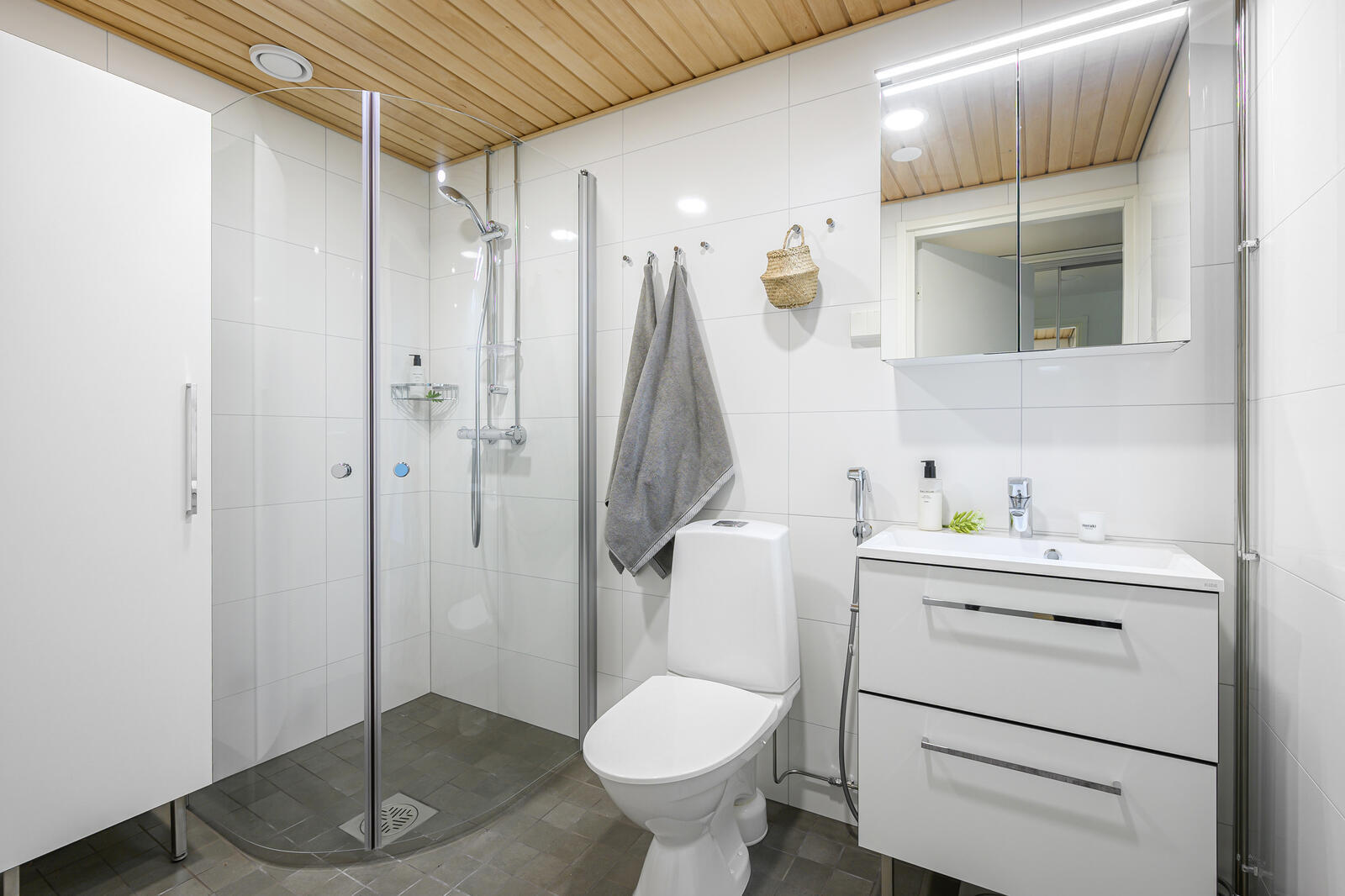 Suihku ja peili, seinät (kaakeli), lattiat (laatta) |
