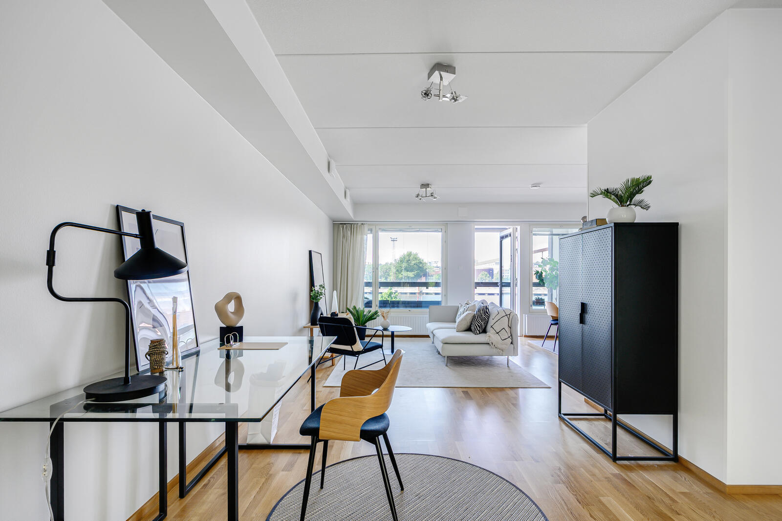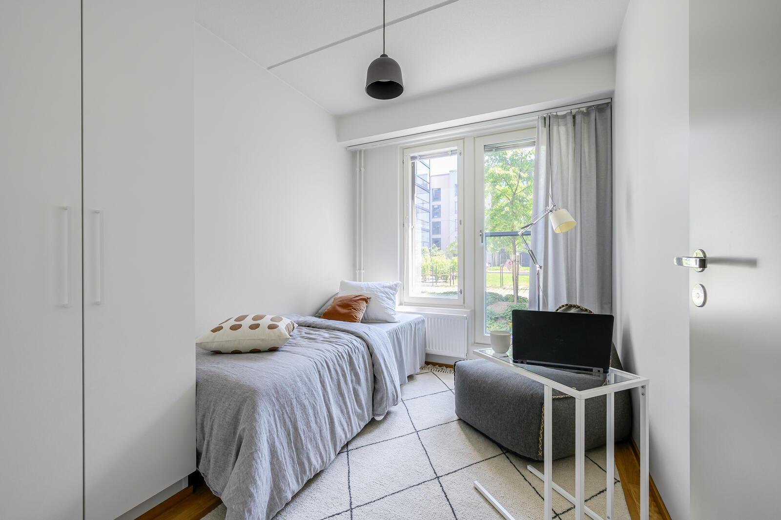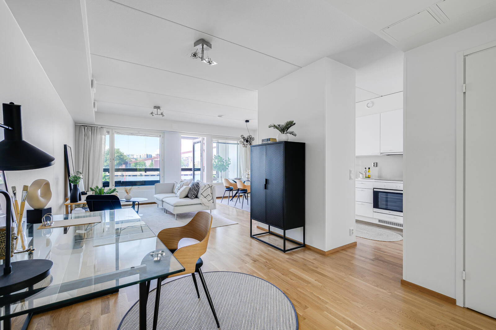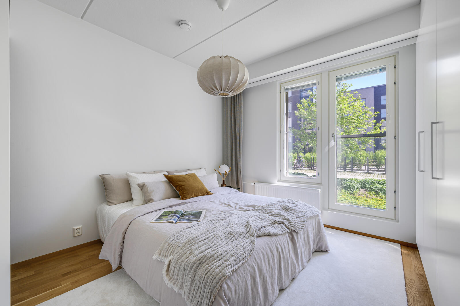 Lisätietoja sisältyvistä varusteista: huoneistokohtainen jäähdytyskone, kaapistot, sälekaihtimet/rullaverhot |